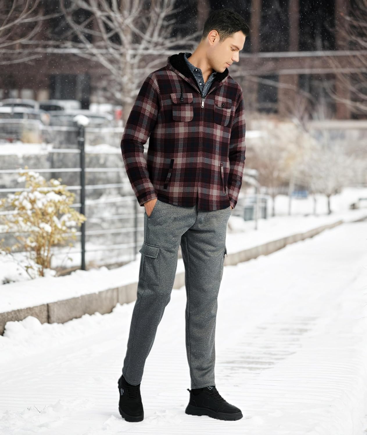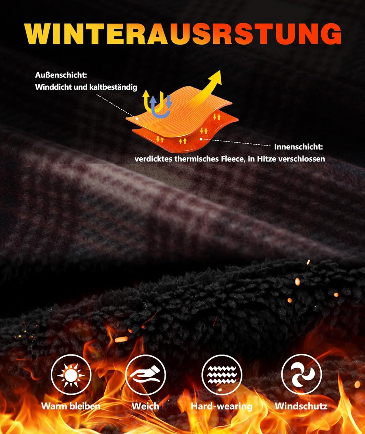 JACKETOWN Hemdjacke Herren Kariertes Winterjacke Thermohemd Fleece Gefüttert Freizeit Jacke mit Kapu
