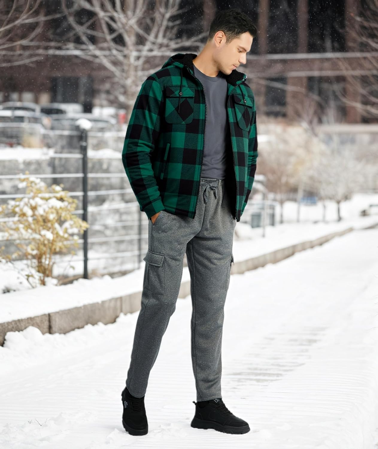JACKETOWN Hemdjacke Herren Kariertes Winterjacke Thermohemd Fleece Gefüttert Freizeit Jacke mit Kapu
