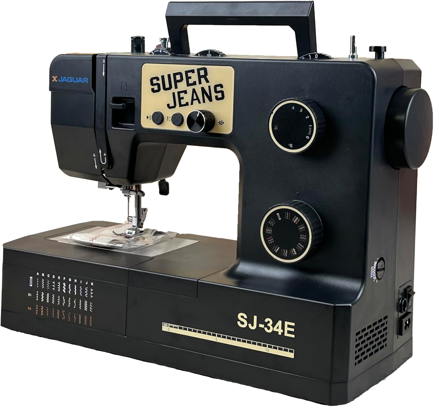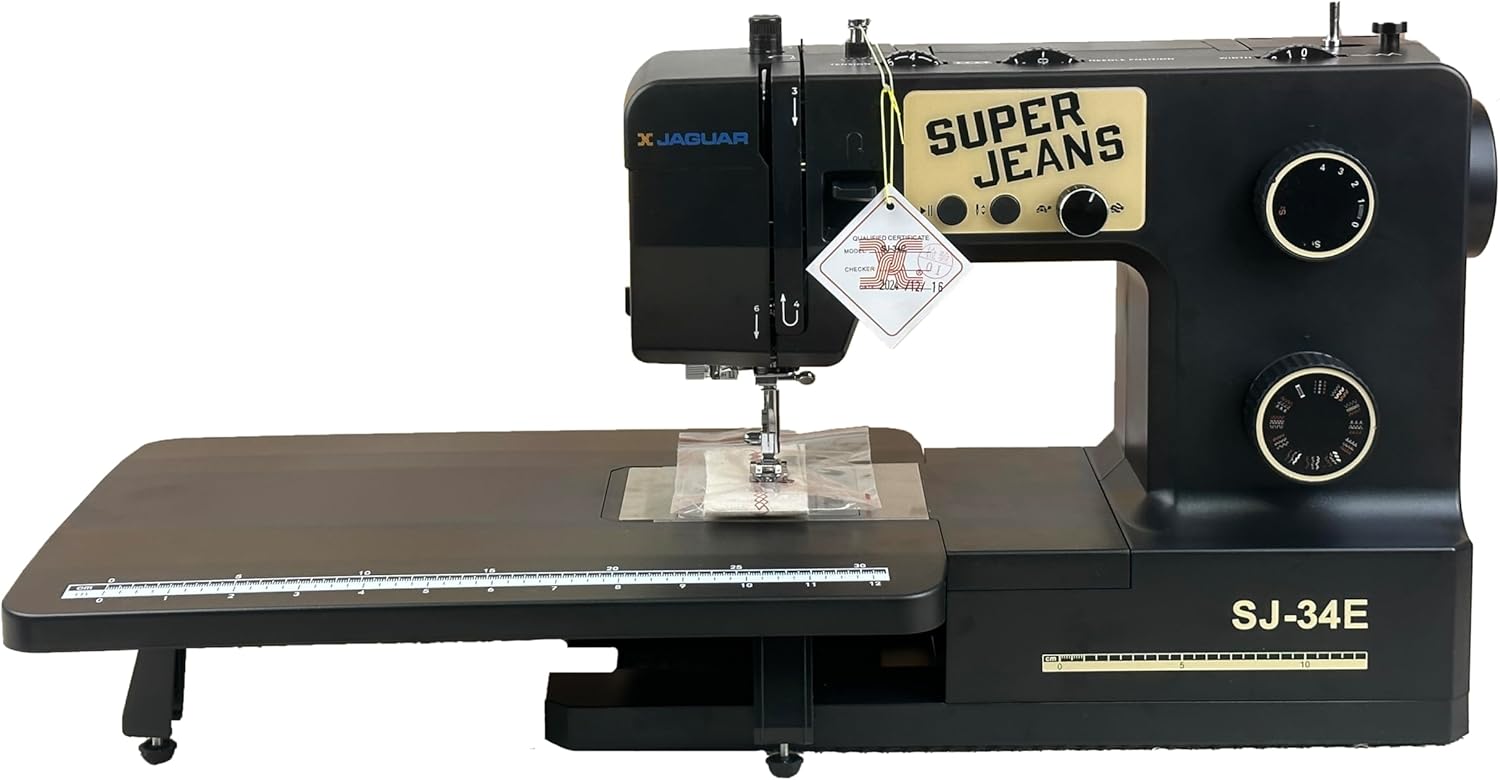Jaguar SJ-34E Robuste Nähmaschine für dicke Stoffe | 34 Stiche | Elektronik | Erweiterungstisch | Au