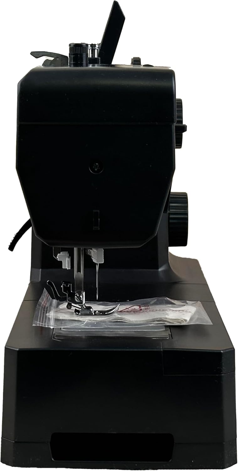 • Komplettes Zubehör-Set im Lieferumfang enthalten – Lieferung mit einer Vinyl-Schutzhülle, einem Zickzackfuss, einem Knopflochfuss, 3 Nähnadeln, einem Nahttrenner/Fusselbürste, einem Schraubendreher, einer Hilfsspulenachse, 4 Dosen (1