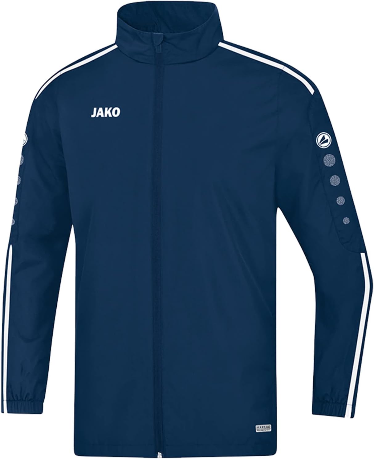 PRODUKTBESCHREIBUNGEN Regen, Wind und Schnee sind keine Ausreden mehr. Mit der Allwetterjacke STRIKER 2.0 trotzt Du allen Bedingungen auf und neben dem Platz. Ausgestattet mit den JAKO Funktionen STOP WIND und STOP WATER schützt die Jacke vor Witterungseinflüssen in der kalten Jahreszeit. Ihr Innenfutter aus Lining Mesh isoliert vor Kälte. Die im Kragen integrierte Kapuze lässt sich bei Bedarf überziehen. Dank des wasserabweisenden Obermaterials bleibst Du auch bei Regen trocken. Die Jacke lässt sich individuell auf den Träger anpassen. Zum Beispiel mit den Ärmelabschlüssen mit elastischen Einsätzen sowie dem Jackenabschluss mit Kordelzug und Stoppern. STRIKER 2.0 ist eine klassische Teamline im typischen JAKO Design. Auf der Kapuzenjacke der Linie ist der typische Kontraststreifen in Kombination mit den JAKO Dots im Ärmel- und Schulterbereich zu sehen. Sie ist in den Grössen 128 - 164 für Kinder und S - 3XL für Erwachsene erhältlich.