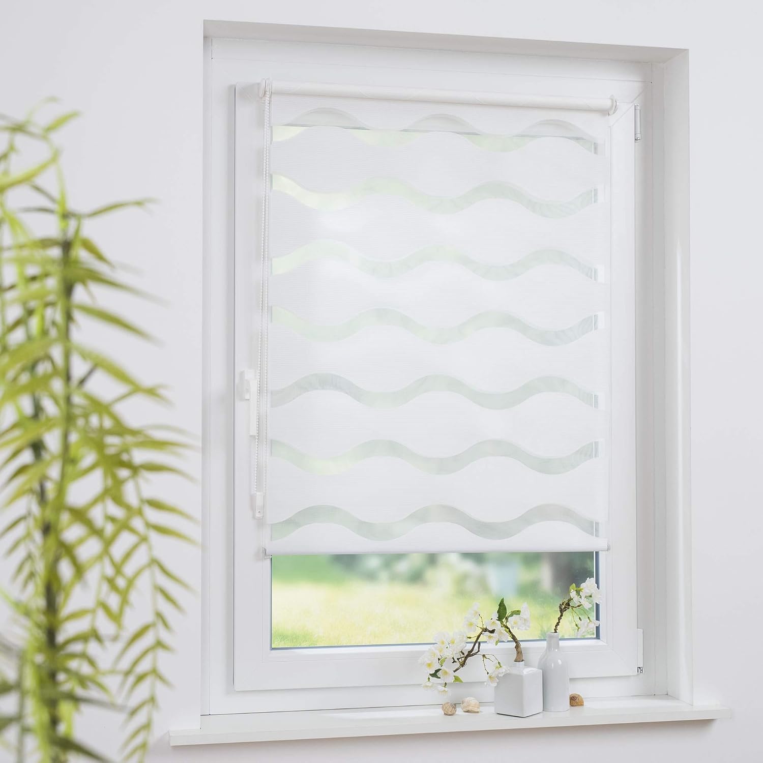 - Hochwertiges Doppelrollo, leichte Bedienung durch Kettenzug (rechts)
