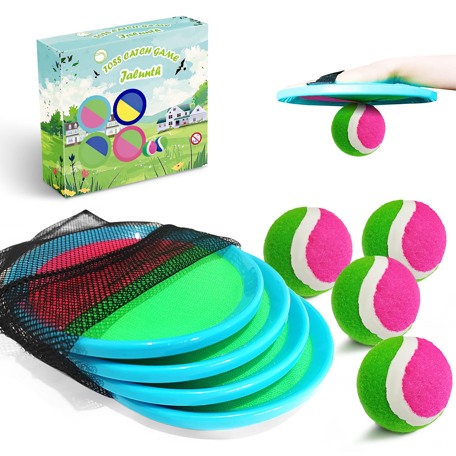 - ⚾ Great Balance Stickiness Volcro – Das Volcro-Stück am Paddel ist klebrig genug, um den Ball leicht zu fangen. Aber es ist für Ihre Kleinsten nicht schwer, den Ball von der Volcro-Scheibe zu ziehen. Dieses Fangwurf-Set aus umweltfreundlichem PE,