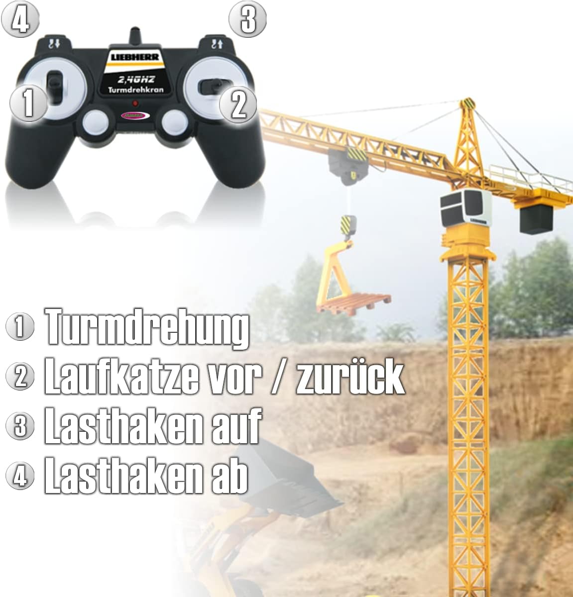 • 👷‍♂️ VIELE FUNKTIONEN: Lasthaken auf und ab - Laufkatze vor und zurĂĽck - Endlose Turmdrehung im und gegen den Uhrzeigersinn