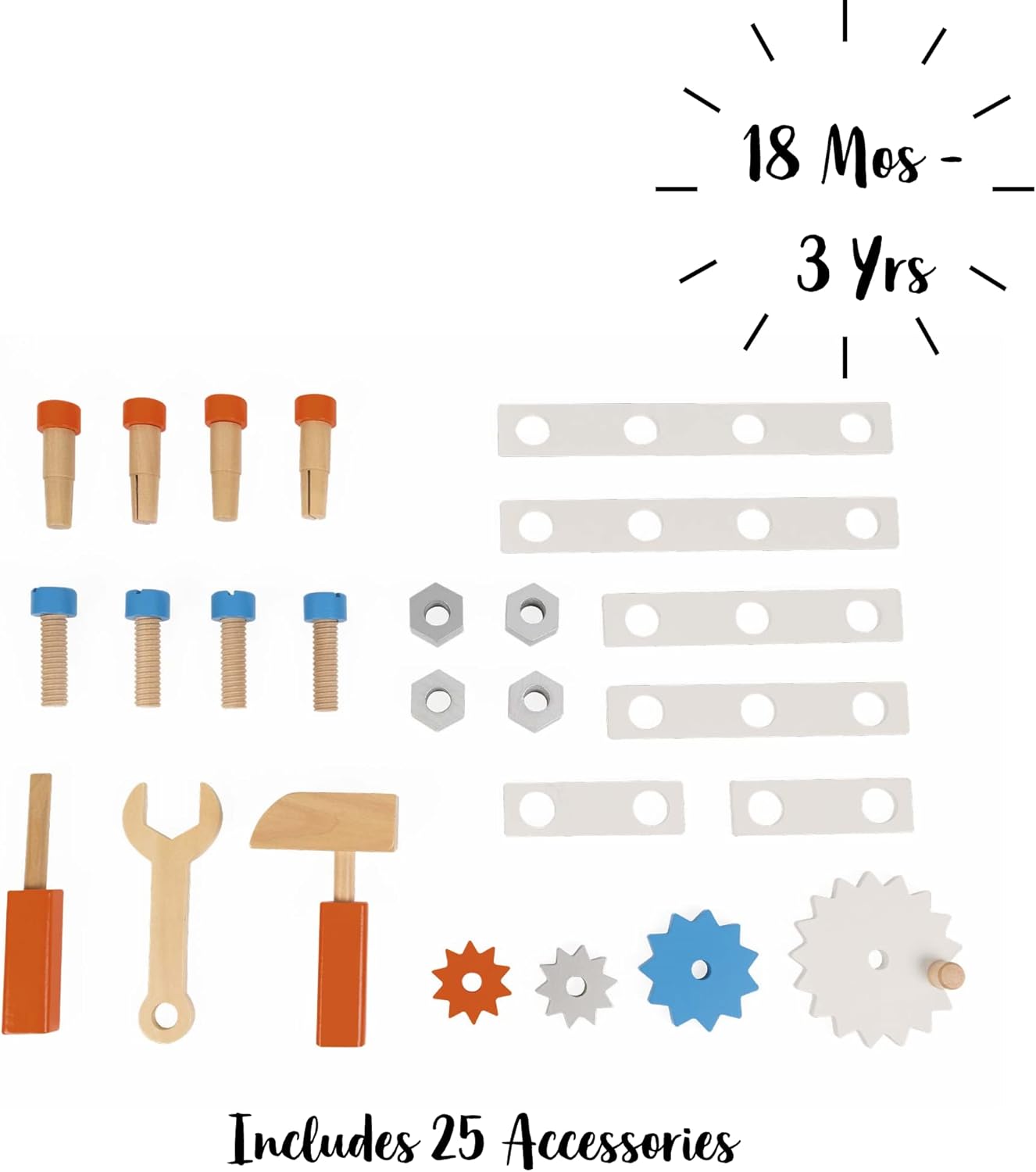 - Sein erstes Werkzeug-Set: Dieser schöne Holz-Werkbankwagen, der ab einem Alter von 18 Monaten geeignet ist, wird angehende Heimwerker und „Alleskönner“ begleiten, die endlos bauen, zerlegen und umbauen werden