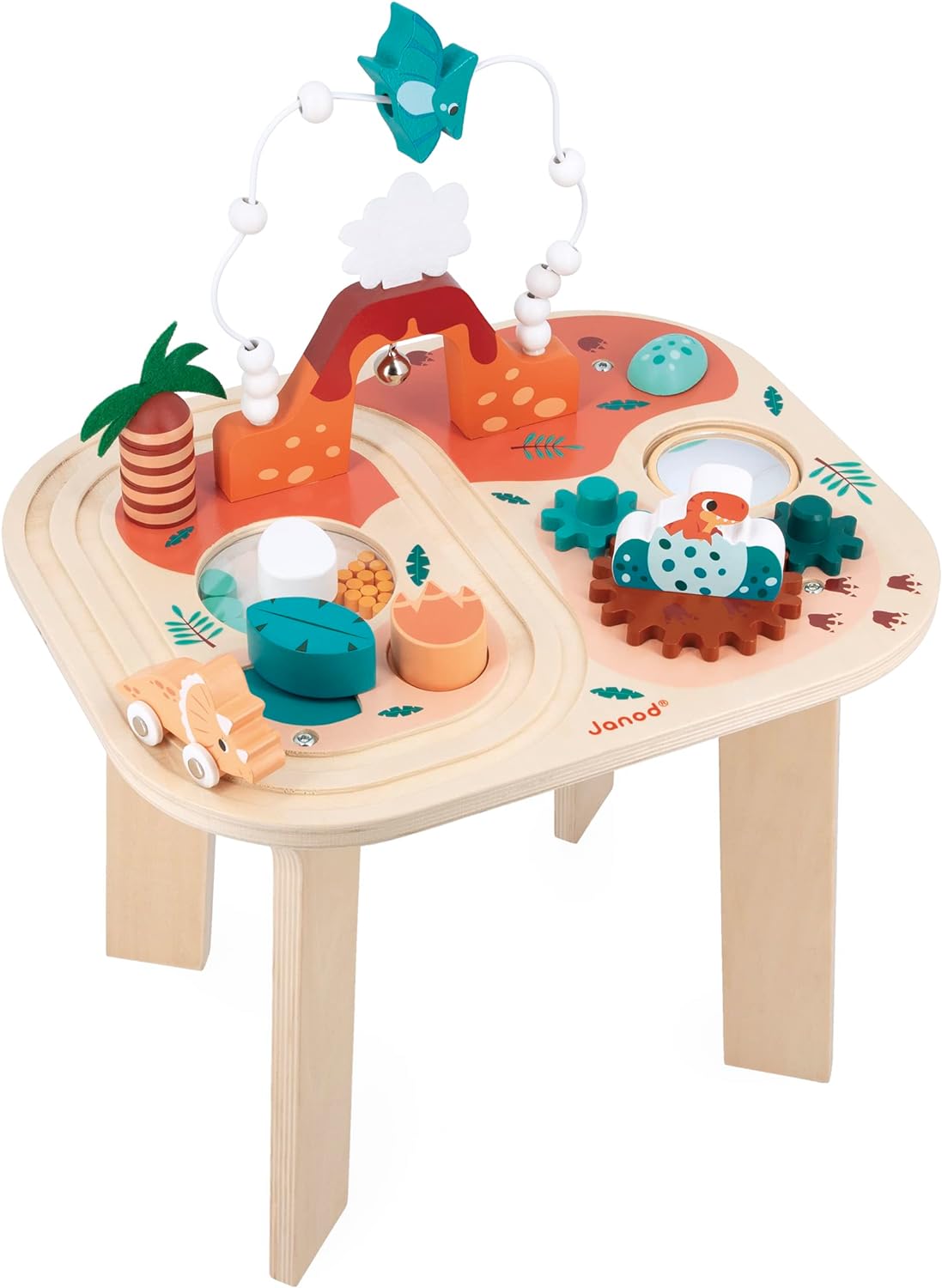 JANOD Dinosaure-8 Dinosaurier-Aktivitätstisch-8 Aktivitäten-Lernspielzeug-Feinmotorik und Fingerfert
