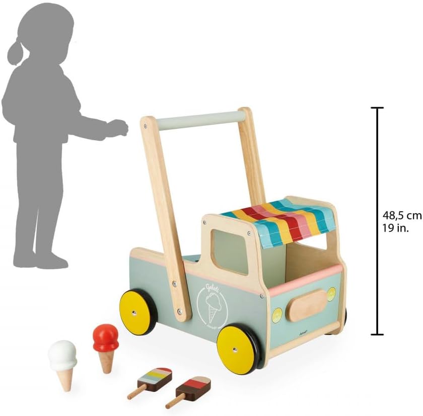 • MERKMALE : Enthält 1 Lauflernwagen, 4 Eissorten; Grösse des Spielzeugs : Länge 41 cm x Breite 31 cm x Höhe 48,5 cm; Verwendete(s) Material(ien) : Holz (Sperrholz und Buche und Kiefer); Empfohlene Altersgruppe : von 12 Monaten bis 36 Monaten;