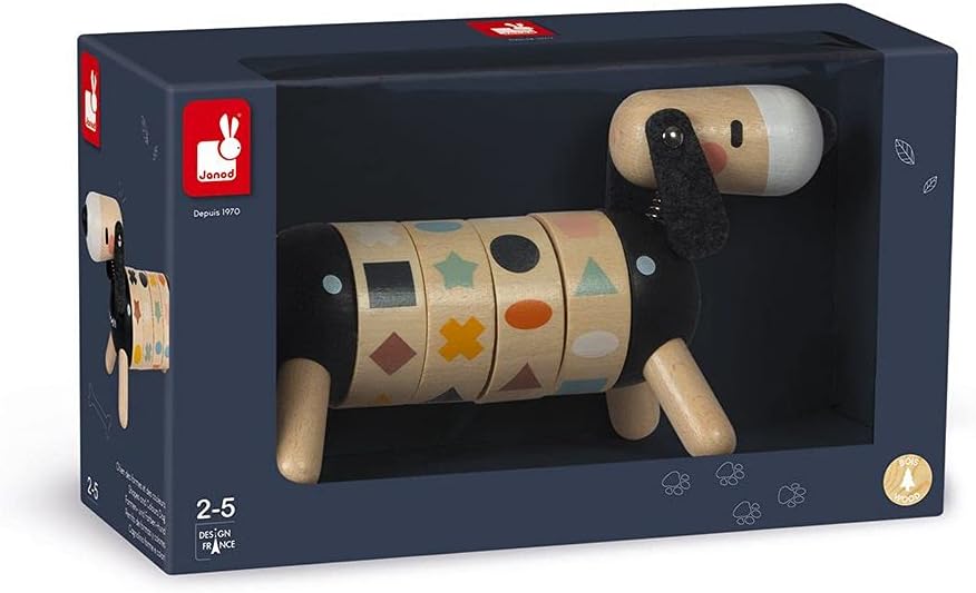 Janod - Formen- und Farben-Hund aus Holz - Kollektion Sweet Cocoon - Baby- und Kleinkindspielzeug Fa