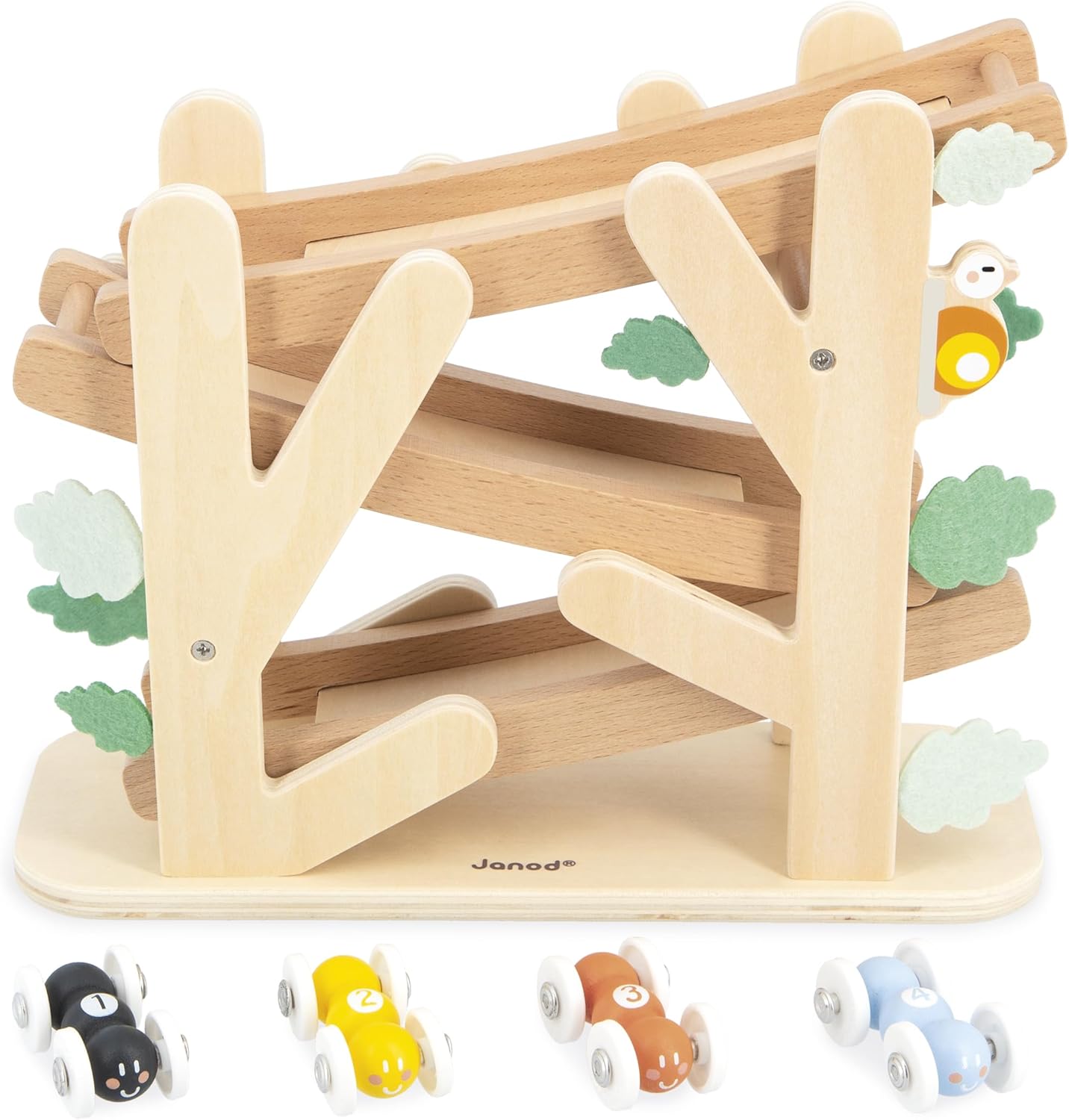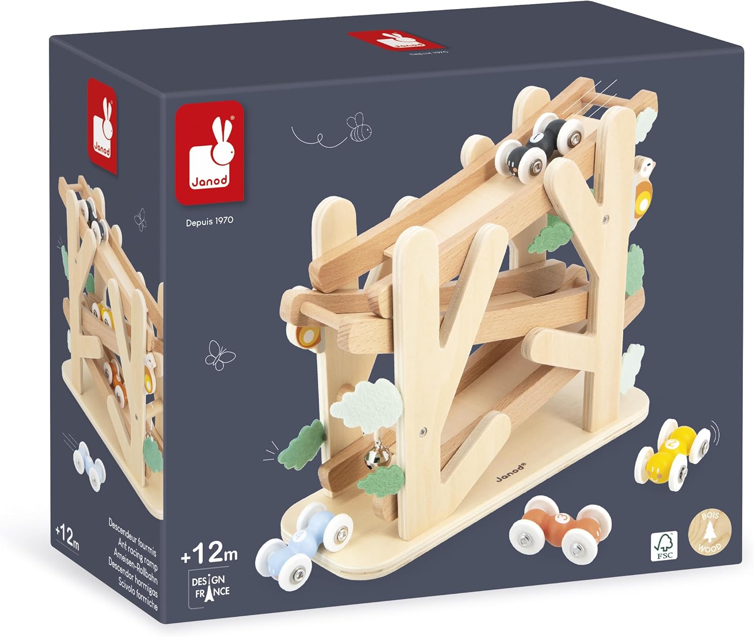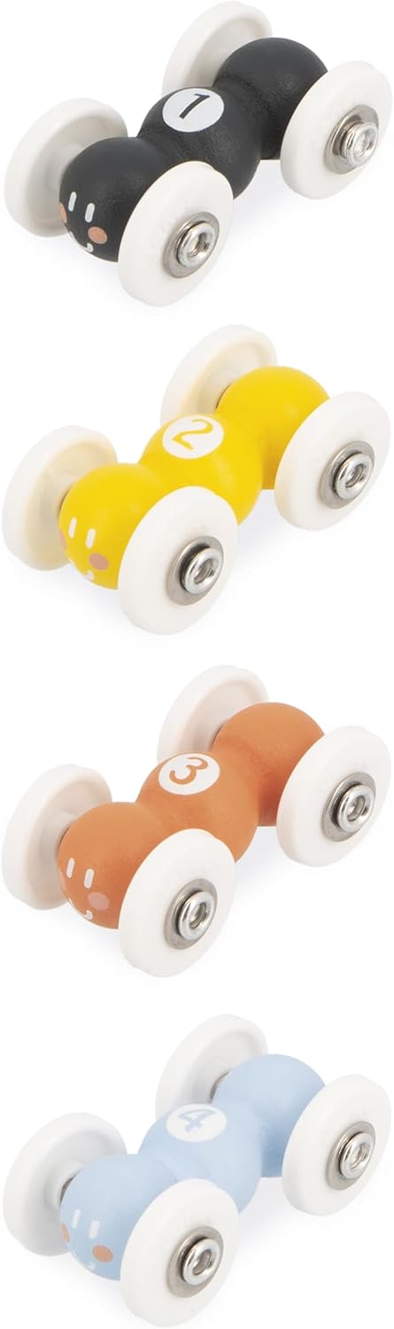 - BEREIT FÜR EIN WETTRENNEN? Stellen Sie die vier Ameisen auf diesem Abfahrtslauf aus Naturholz auf und lassen Sie sie hinunterrutschen, bis das Glöckchen das Ziel ankündigt! Ihr Kind wird es lieben, seine Lieblingsameise immer wieder neu zu
