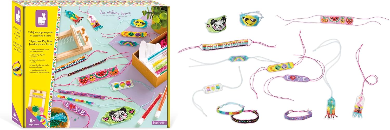 Janod J07999 Spiel 13 Jewel Pops in Perlen und einem Webstuhl, Mehrfarbig