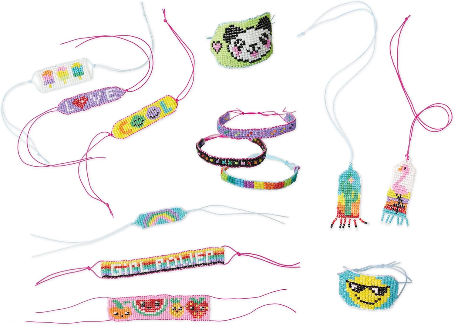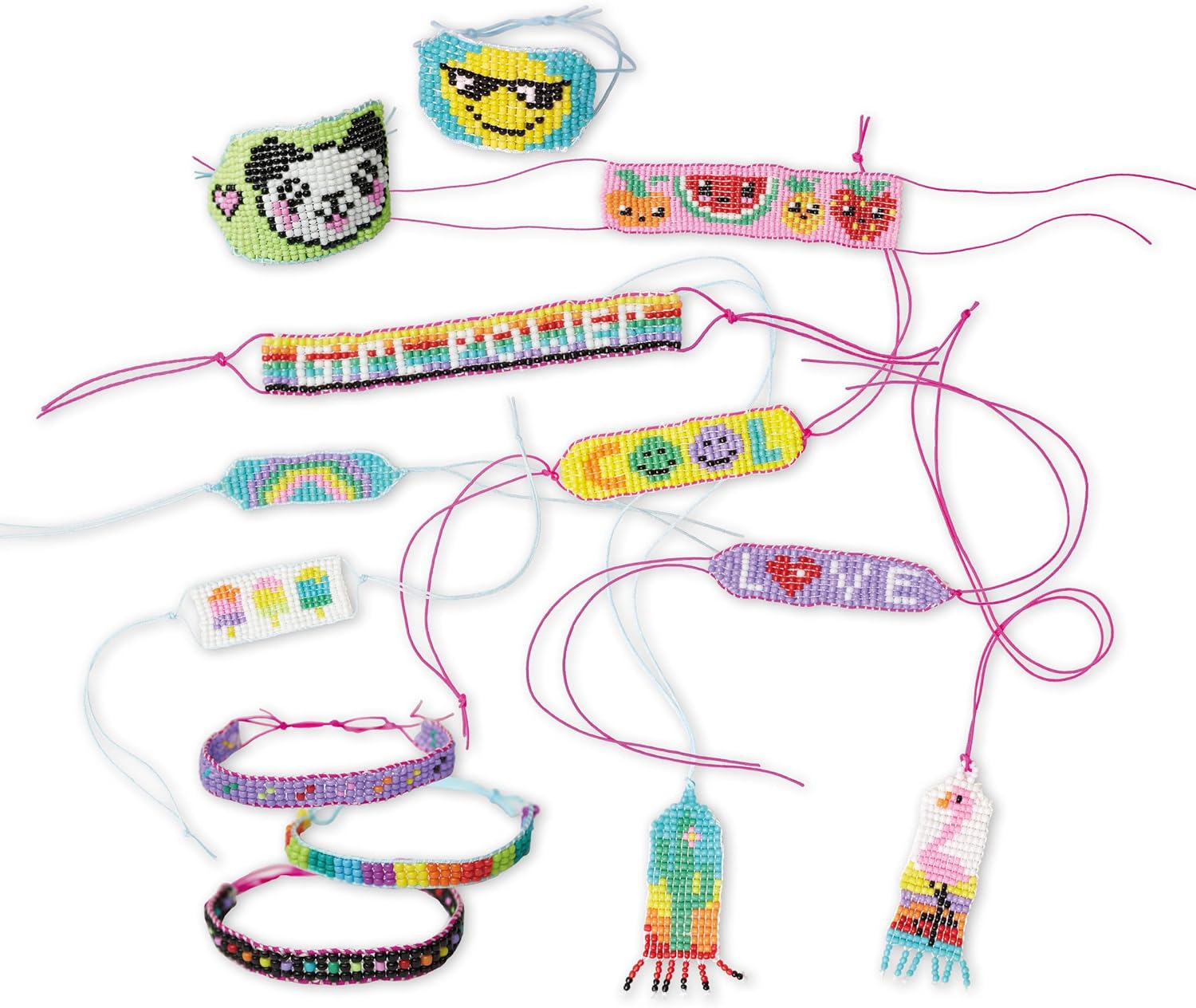 • MEIN GEWEBTER SCHMUCK: Mit diesem Schmuck-Bastelset kann Ihr Kind bis zu 13 bunte Schmuckstücke mit Emoticon-, Regenbogen- und Wortmustern anhand der Schaubilder in dem Heft oder nach seinen eigenen Vorstellungen anfertigen.