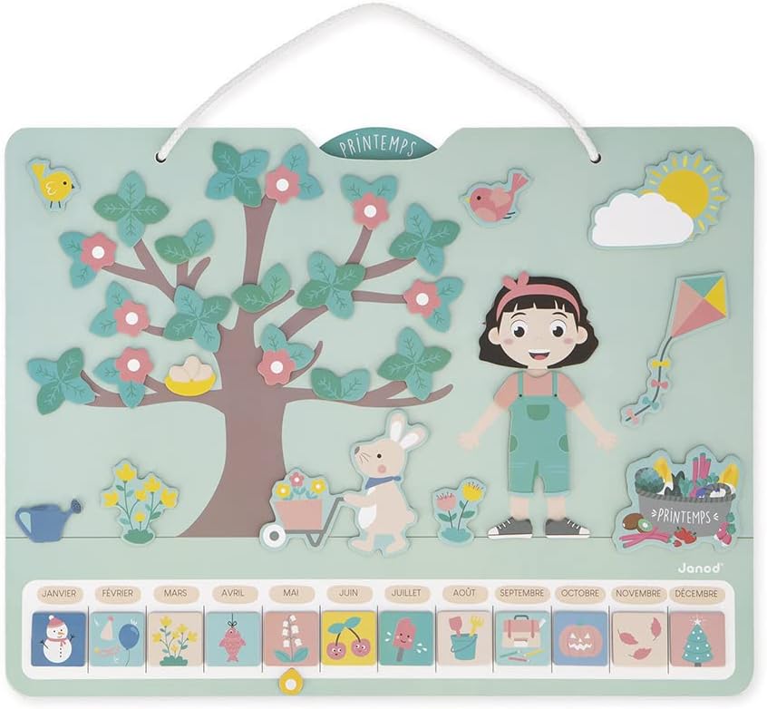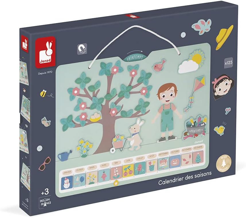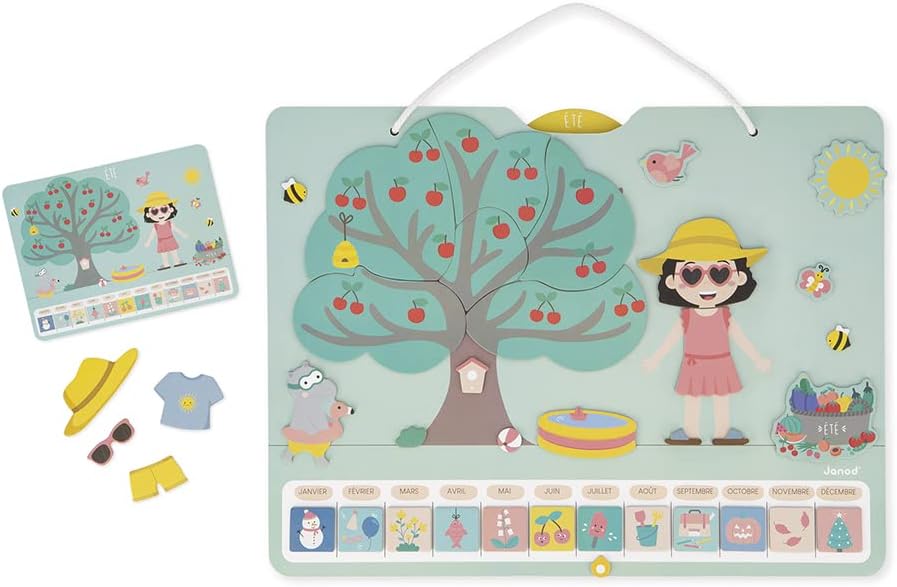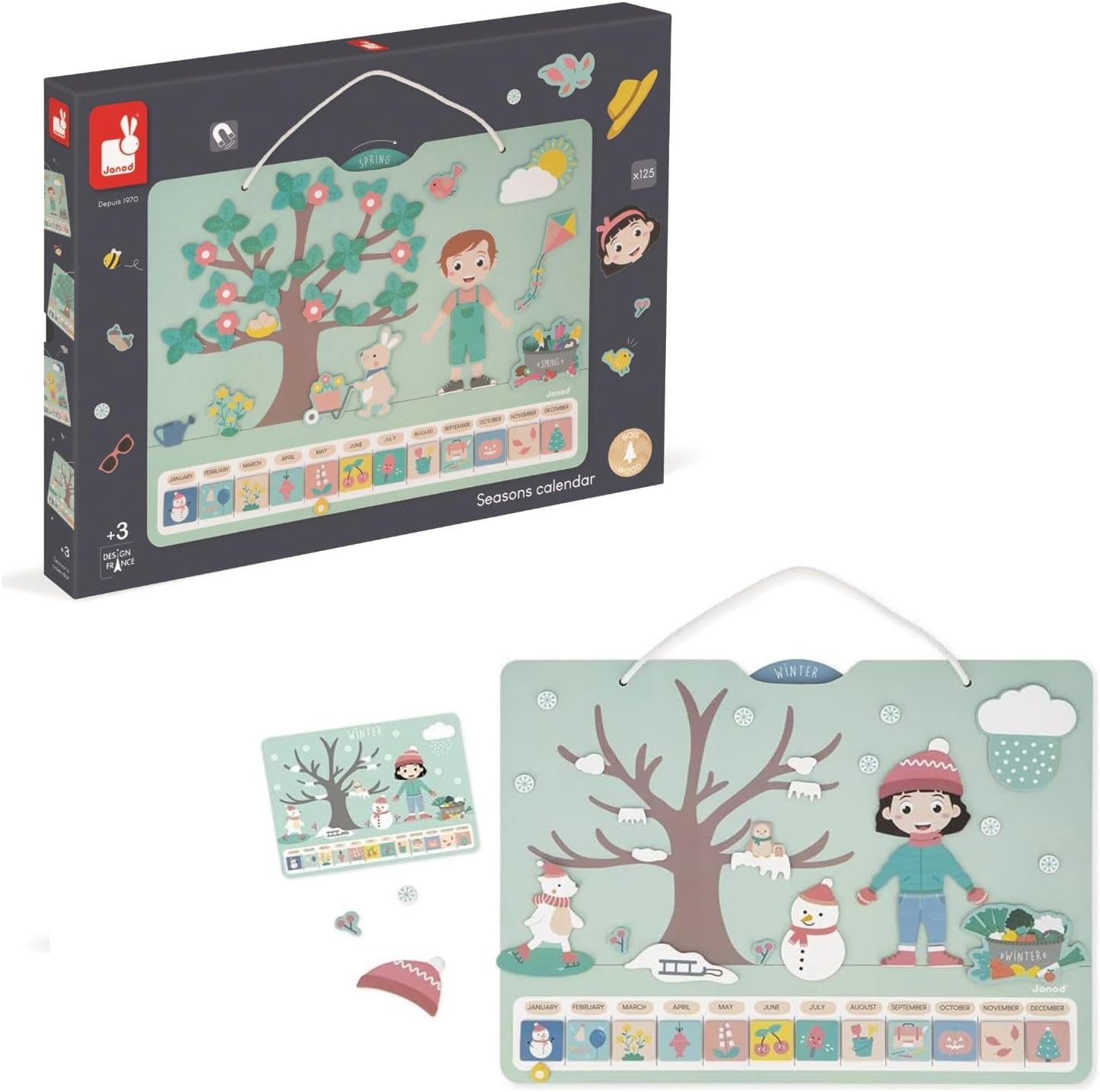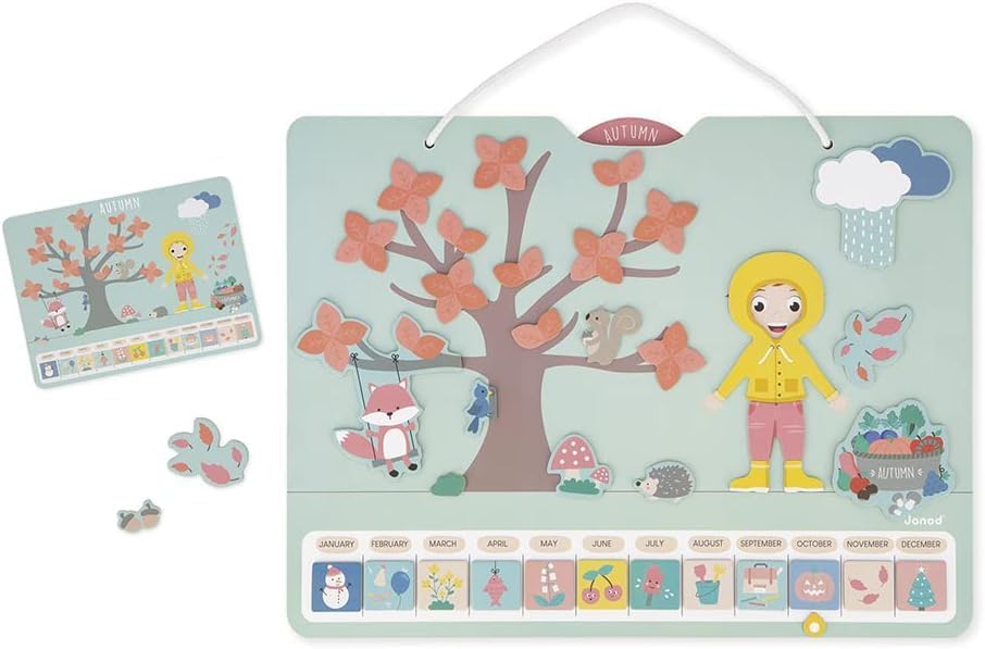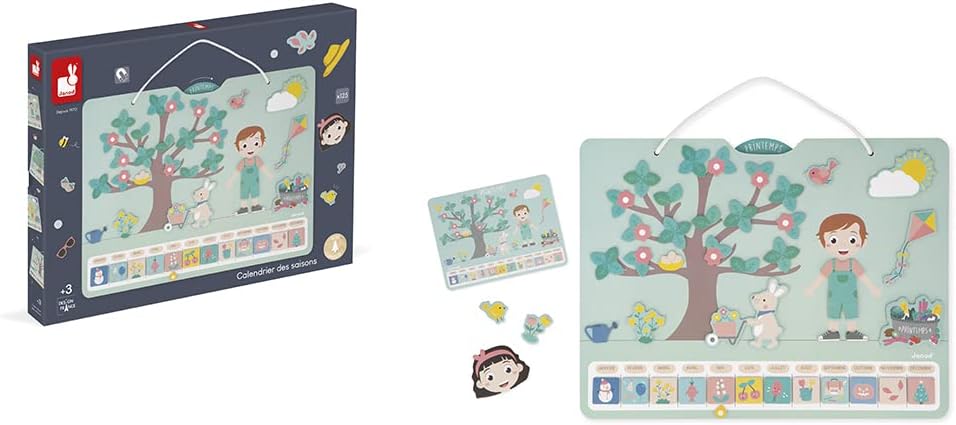 - JAHRESZEITEN LERNEN: Diese hübsche Kalendertafel aus Holz (42 x 32 cm) fördert Kinder ab 3 Jahren beim Erlernen der Jahresabläufe und begleitet sie bis weit in die Grundschulzeit hinein; Die Aufteilung der passenden Magnete für die verschiedenen