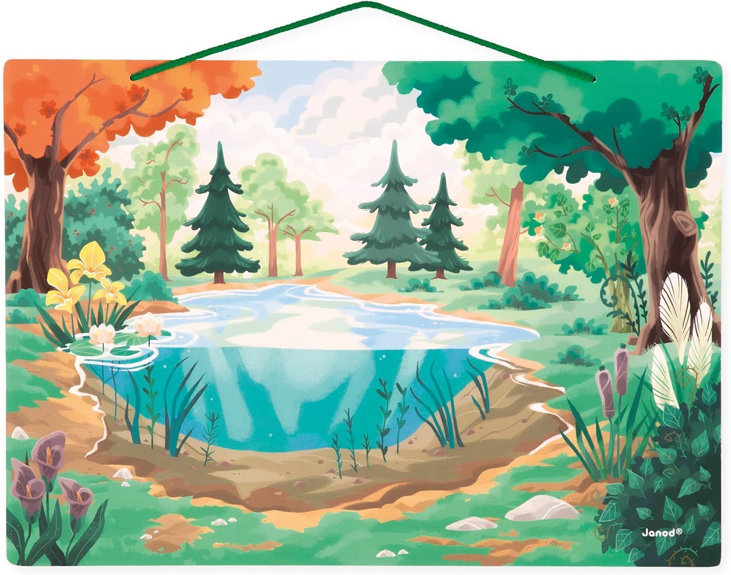 Janod - Magnet-Puzzle Der Teich - 70 Magnete aus FSC-Holz - 1 Erklärungsposter - Lernspiel - Fauna u
