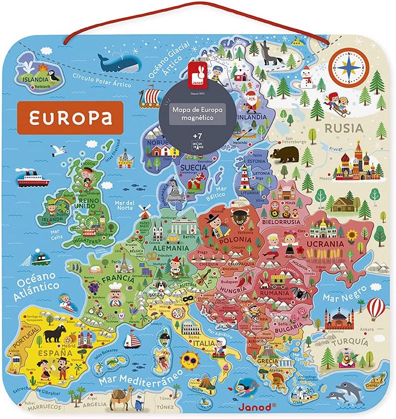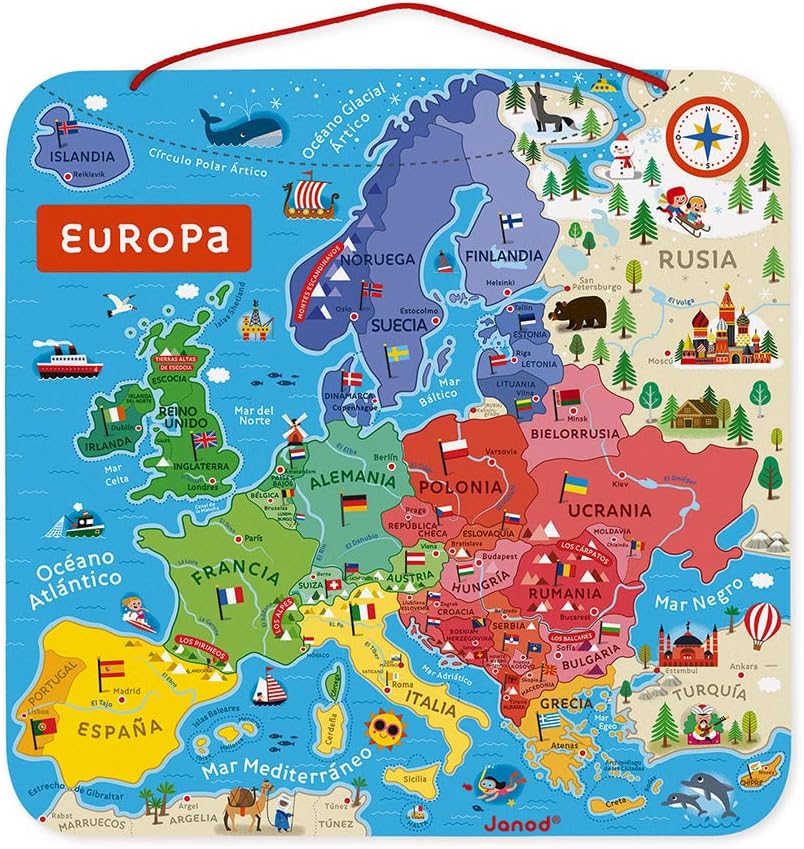 • EINE EUROPAREISE MIT 40 MAGNETEN : Dieses Holzspielzeug enthält 40 Magnete. Jeder Magnet repräsentiert ein Land oder eine Region Europas, mit seinem Namen, seiner Hauptstadt und einem Bild, das diesen Teil der Welt charakterisiert. Das Puzzle zeigt