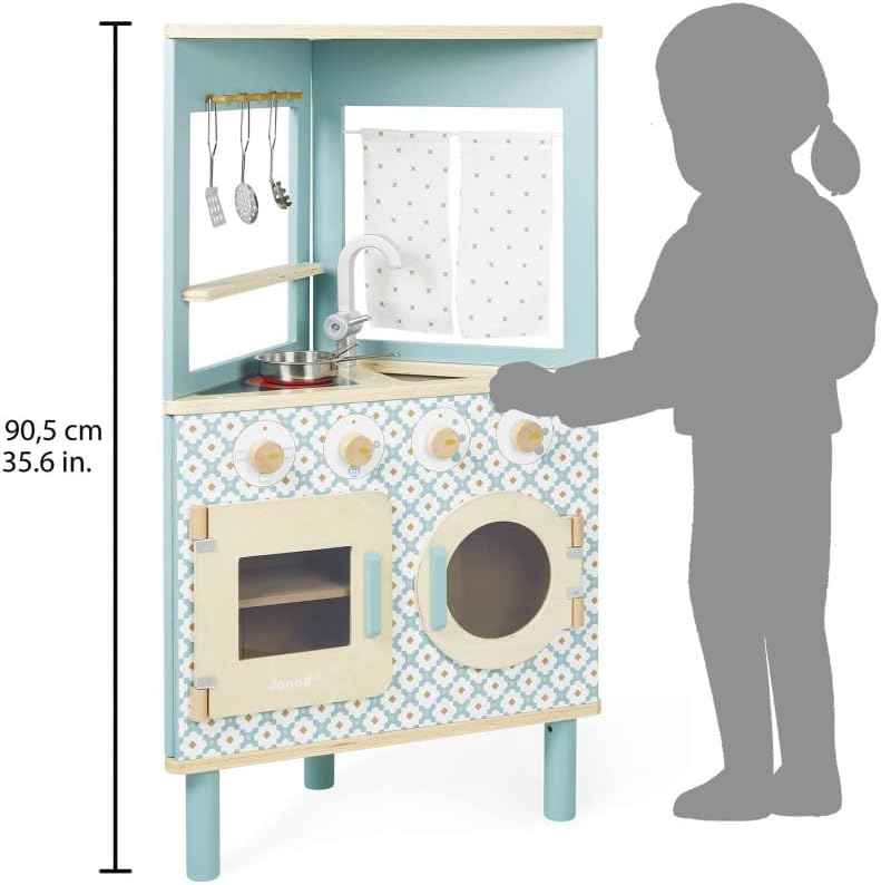 - VOLL AUSGESTATTETE HOLZKÜCHE: Diese 3-seitige Holzküche enthält alles, was man für die Zubereitung leckerer imaginärer Mahlzeiten und die Hausarbeit braucht: 1 Backofen, 1 Waschmaschine, 4 Drehknöpfe (mechanische Soundeffekte), 1 Spüle mit