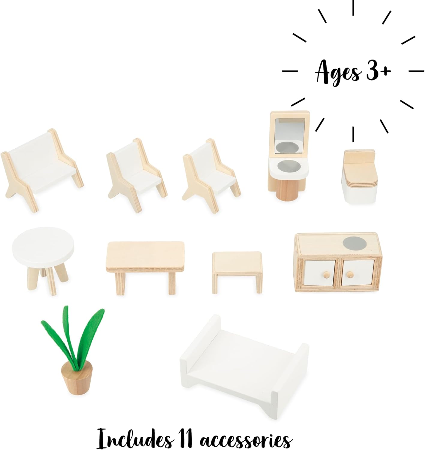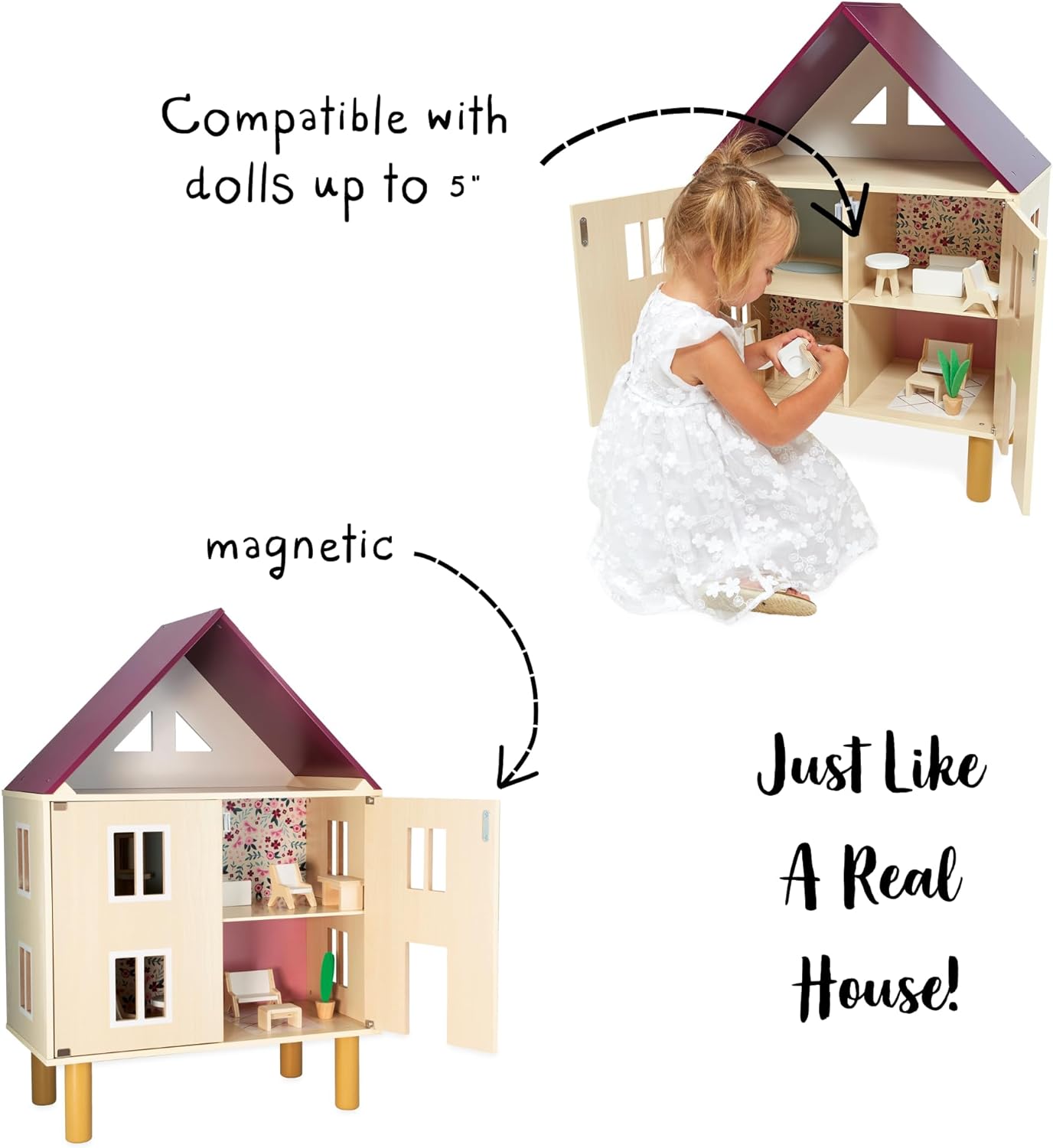 - ORIGINELLES PUPPENHAUS: Die weit zu öffnenden Türen des schönen Holzhauses erleichtern das Spielen. Ihr Kind kann viele Geschichten erfinden, allein oder mit anderen Spass haben und seine Interaktionsfähigkeit trainieren.