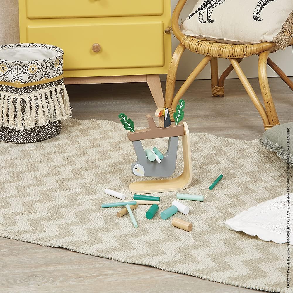 • BALANCE-SPIEL : Wer legt den einen Stab zu viel ab und lässt das leise hängende Faultier unter den Augen des spöttischen Tukans von seinem Ast herunterfallen? Die Regeln für dieses wunderschöne Geschicklichkeitsspiel aus Holz (FSC-zertifiziert),