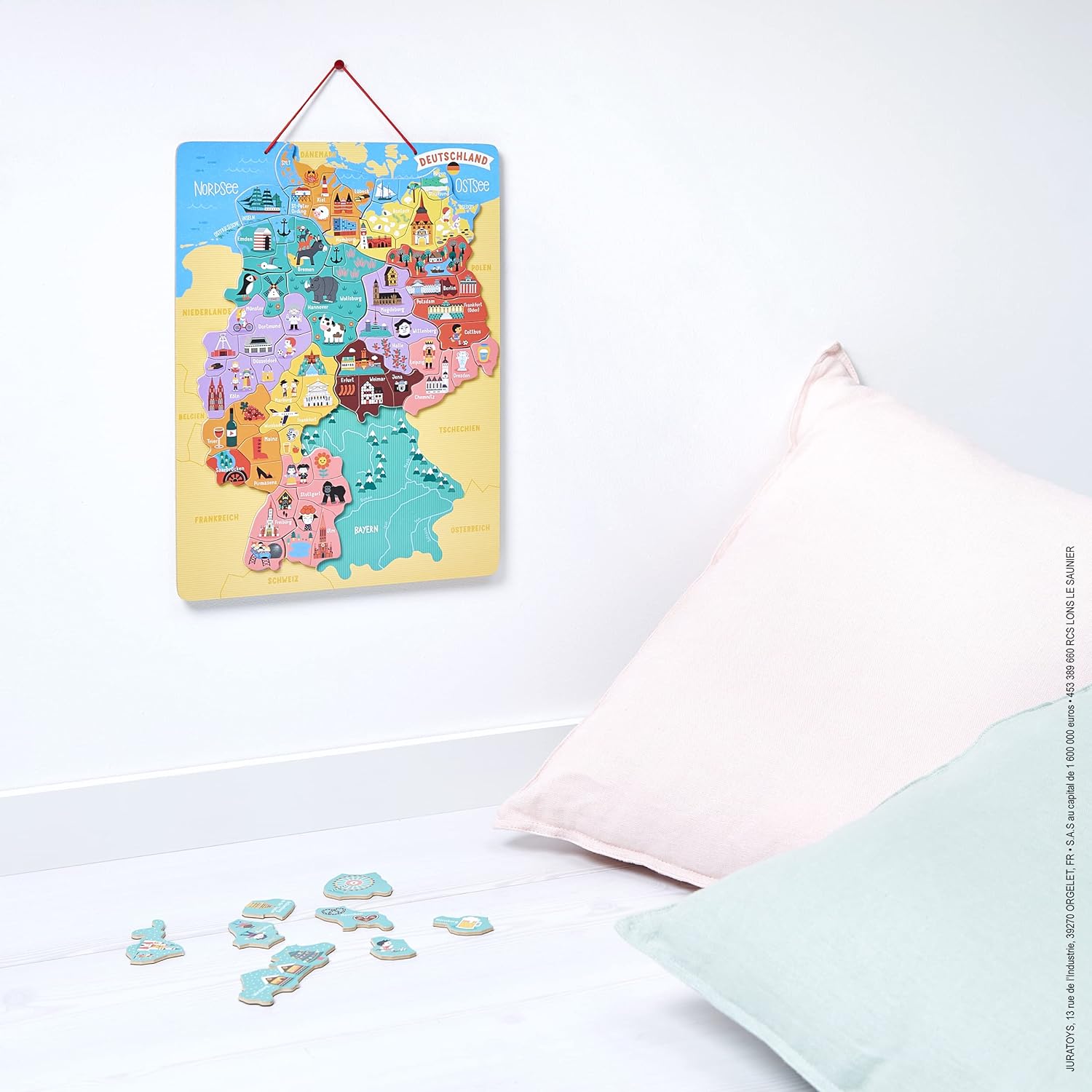 Janod Deutschlandkarte, magnetisch, Puzzle für Kinder aus Holz, 79 magnetische Teile, Entdecken und