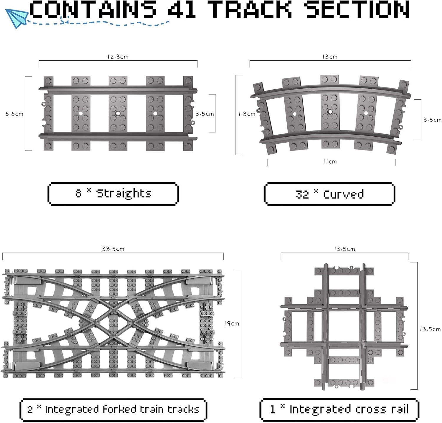 - Kompatibel: Die Stadtgleise sind mit gängigen Marken auf dem Markt kompatibel und können mit anderen Bausteinspielzeugen gespielt werden. Unsere Gleise sind eng miteinander verbunden und unterbrechungsfrei, sodass der Zug neue Ziele erreichen oder