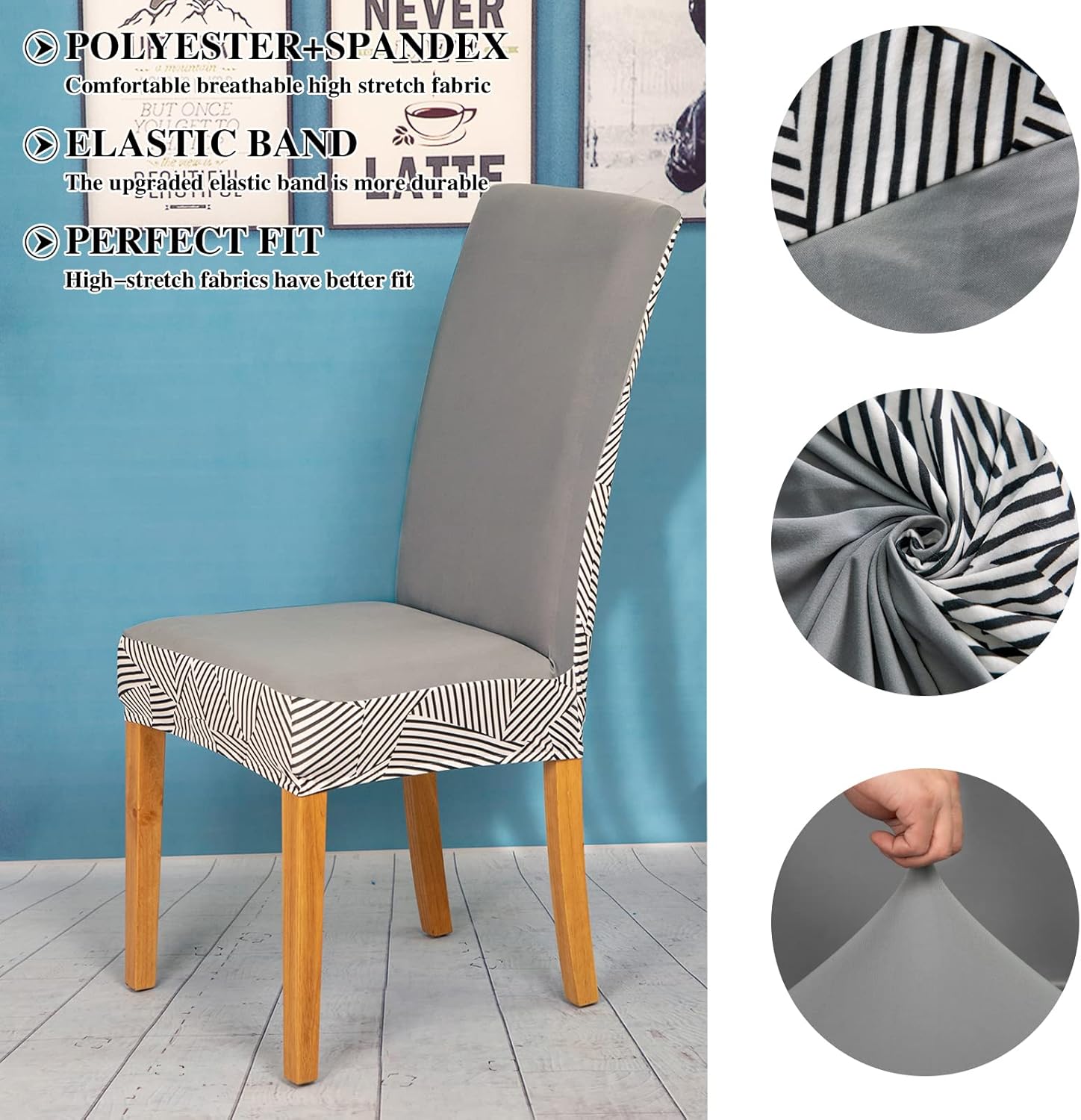 - 【Weicher Stoff】Unsere hochwertige Esszimmer-Stuhlhusse besteht aus 85% Polyester + 15% Spandex. Das Material ist weich, bequem und knitterfrei, bügelfrei, und der hochelastische Stoff kann Ihren Esszimmerstuhl leicht abdecken. Die Elastizität