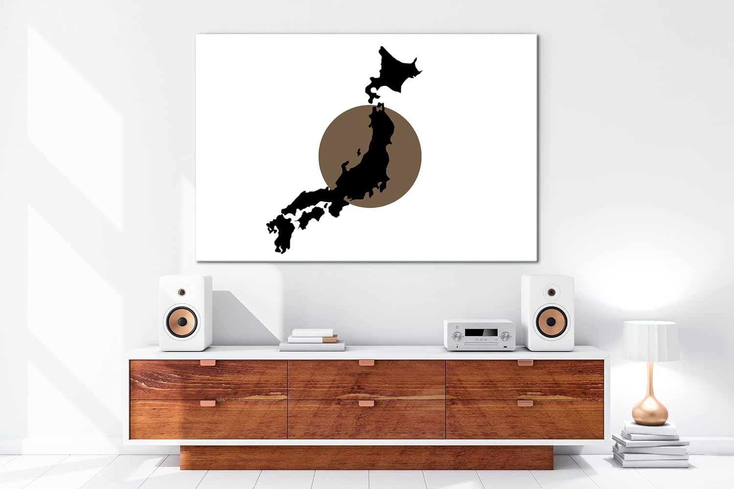 deyoli Japan Karte auf Japan Flagge Format: 80x60 Effekt: Sepia als Leinwandbild, Motiv fertig gerah
