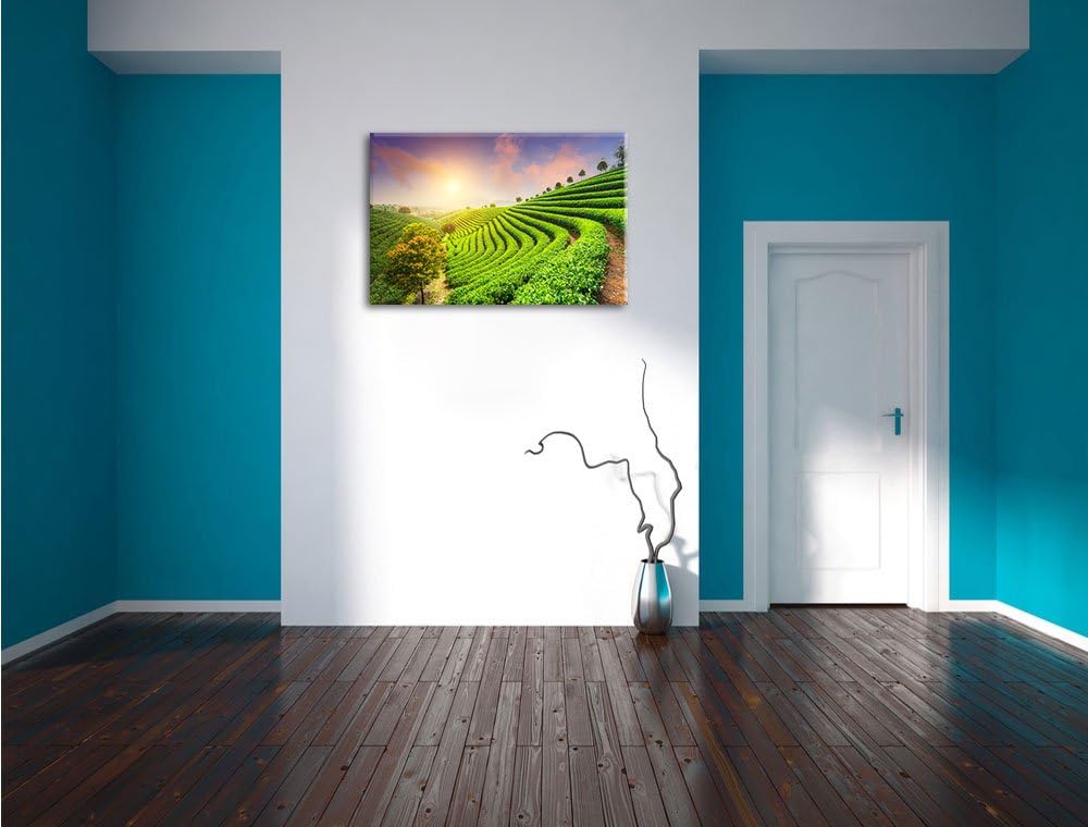 Japanische Treppenfelder, Format: 100x70 auf Leinwand, XXL riesige Bilder fertig gerahmt mit Keilrah