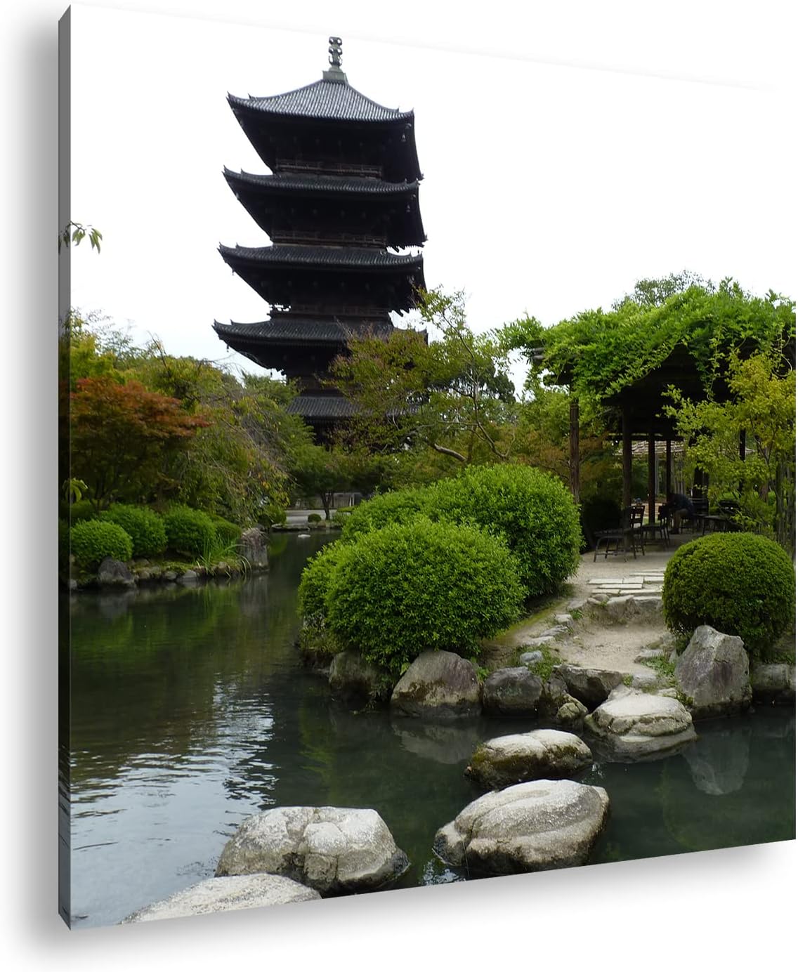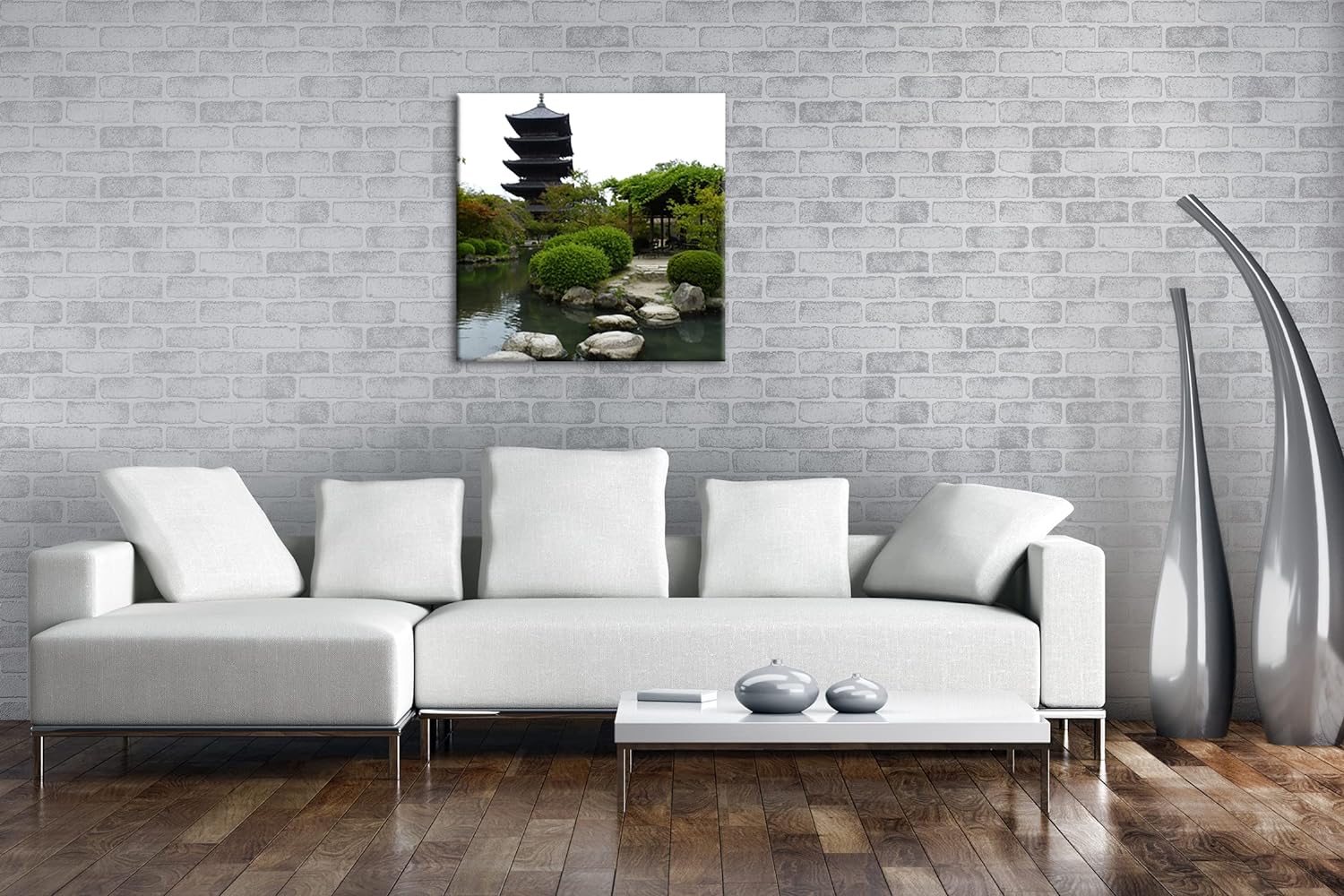 Japanischer Zen-Garten Format: 70x70 als Leinwandbild, Motiv fertig gerahmt auf Echtholzrahmen, Hoch