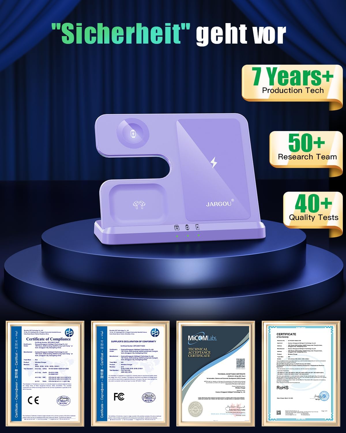 - 【Ein perfektes Geschenk】Das Paket der Ladestation umfasst: 3 in 1 kabellose Ladestation *1, Typ-C Stromkabel *1, 18W Adapter *1, Benutzerhandbuch *1. Mit Multi-Funktions-Ladegerät, wird die Lademethode bequemer. Die JARGOU Wireless Charger macht das