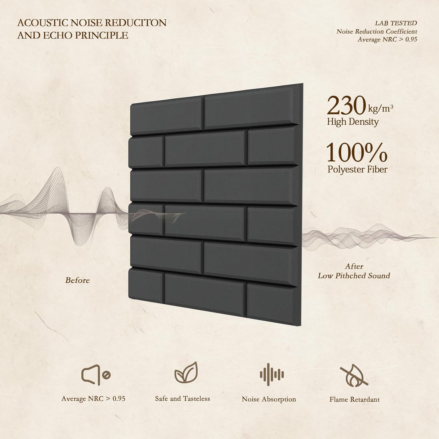 - 【Schallabsorbierende Funktion】 Die schalldichten Wandpaneele nehmen hochwertiges Polyesterfasermaterial und poröse Struktur an, das Luftvibrationen in Schallwellen erfasst und absorbiert, unerwünschte Echos, Wellen, Nachhall und flatternde Echos im