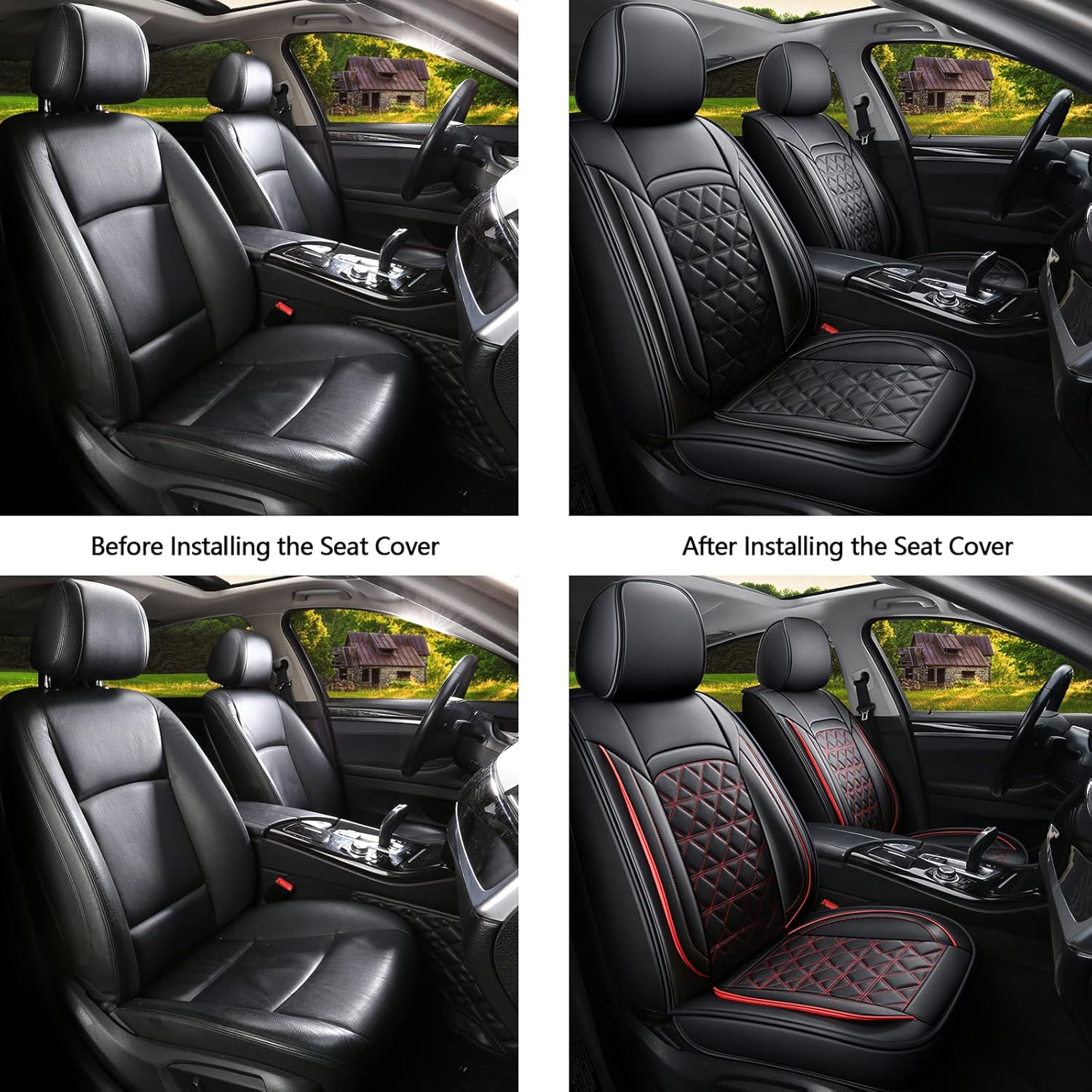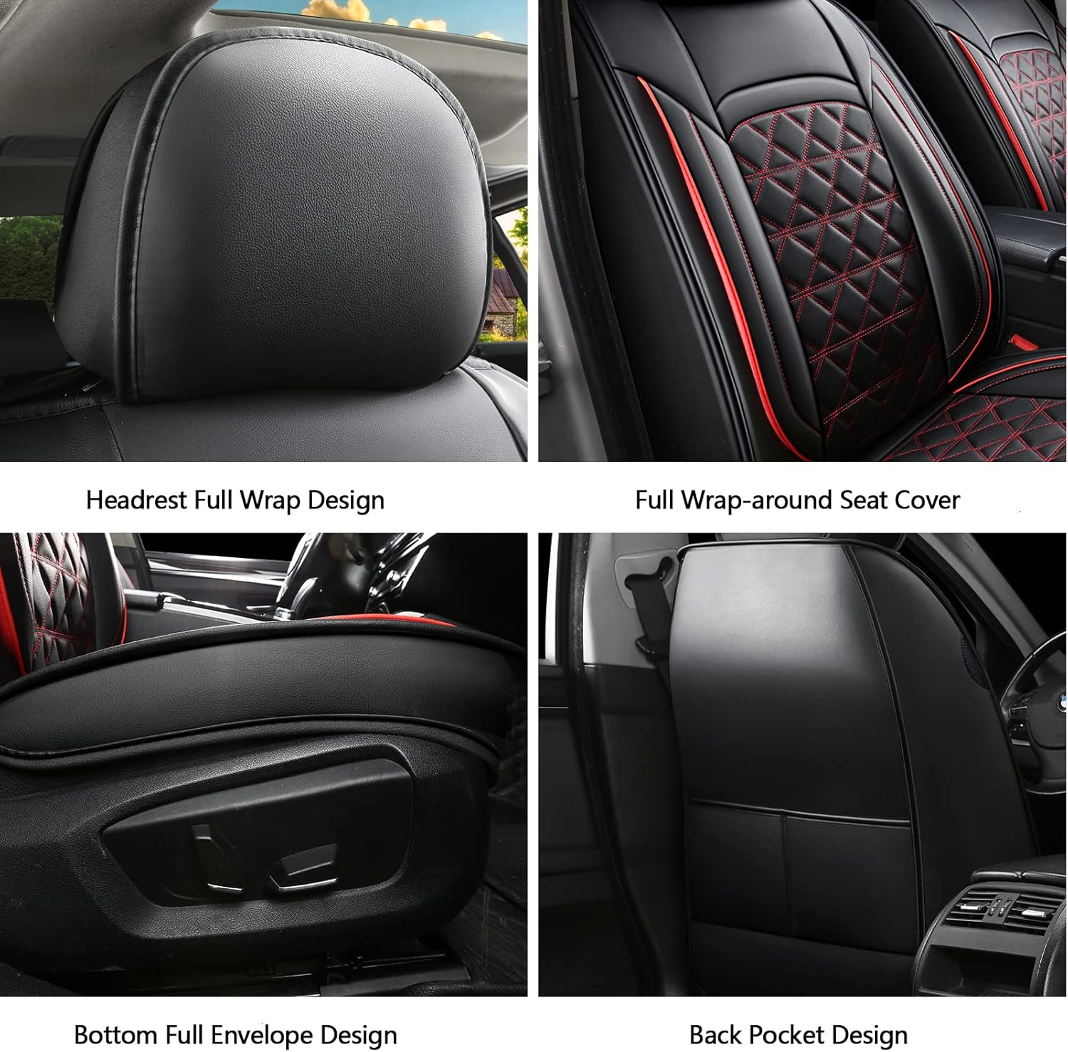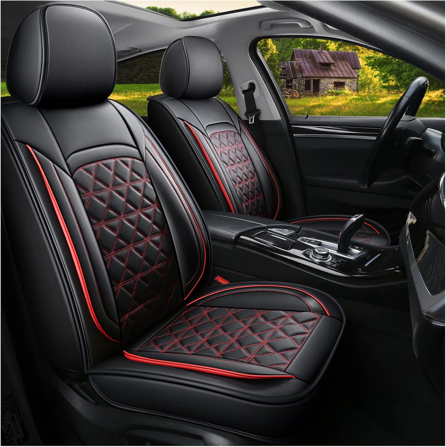 JDWBT Luxus Sitzbezug Auto Vordersitze,Schwarz Rot autositzbezĂŒge Vordersitze Leder Universelle,scho