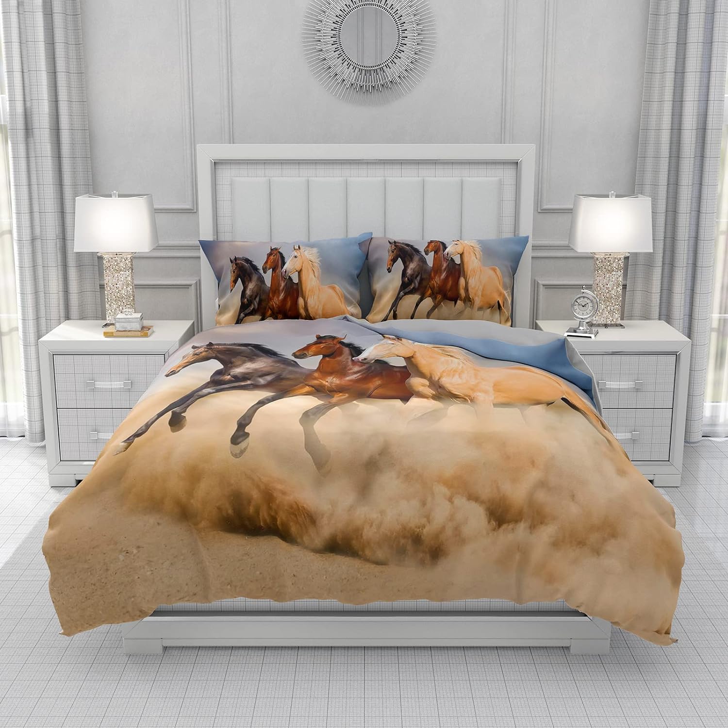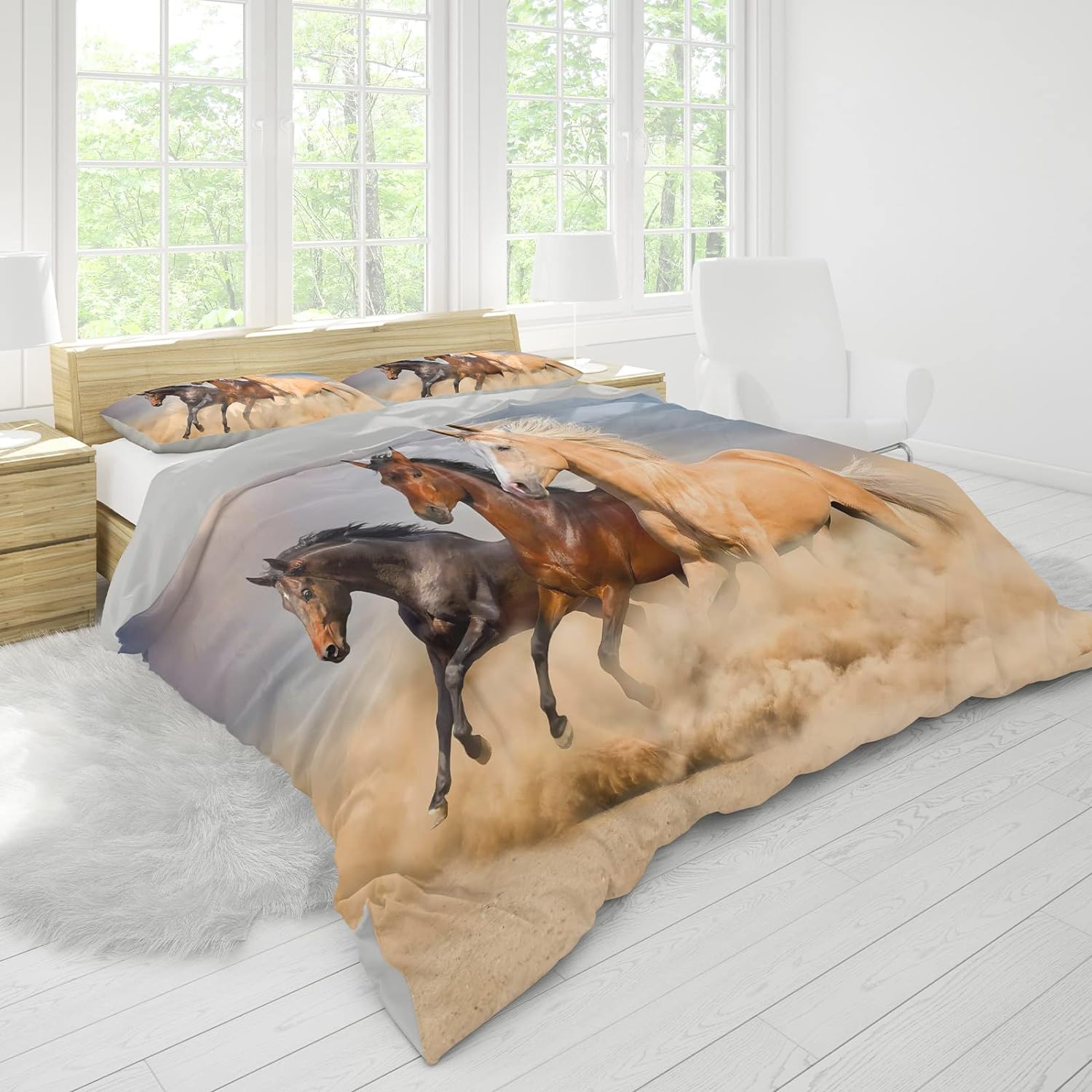 • 🐎【Perfektes Design】 Bettwäsche horse Die Seite des Bettbezugs hat einen versteckten Reissverschluss,praktisch für Ihre Bettdecke.So können Sie Ihre eigene Bettdecke oder anderes Füllmaterial in den Bettbezug geben.Leicht zu demontieren,zu