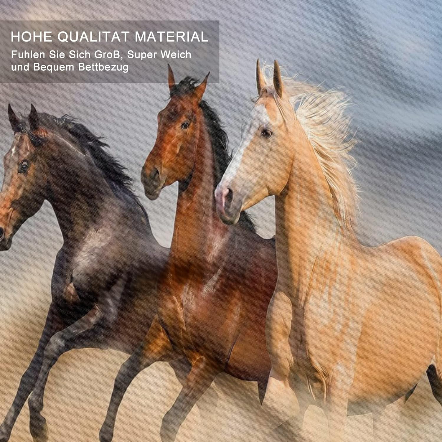 • 🐎【3D Pferde Bettwäsche Set】 Bettwäsche Pferd Schön gestaltete Muster,Stoffe weich,Nähtechniken hochauflösender Digitaldruck.Beeindruckende 3D-Effekte,dekorieren Sie Ihr Zimmer sehr gut.Bringen Sie einen neuen Look.