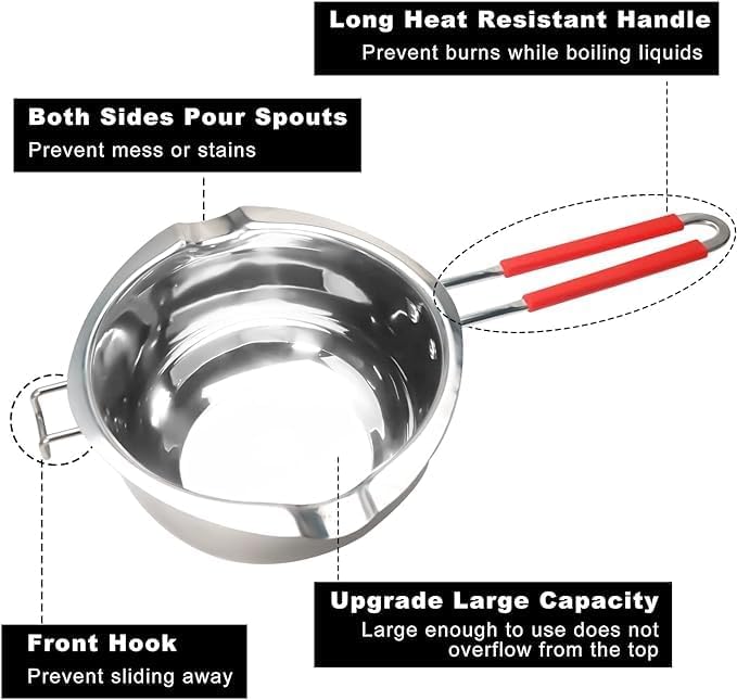 - ❤ Weit Verbreitet -- Perfekt zum Schmelzen von Butter, Käse, Karamell, Schokolade, Süssigkeiten, Wachs usw. Auch als normaler oder warm gehaltener Saucenbehälter geeignet.