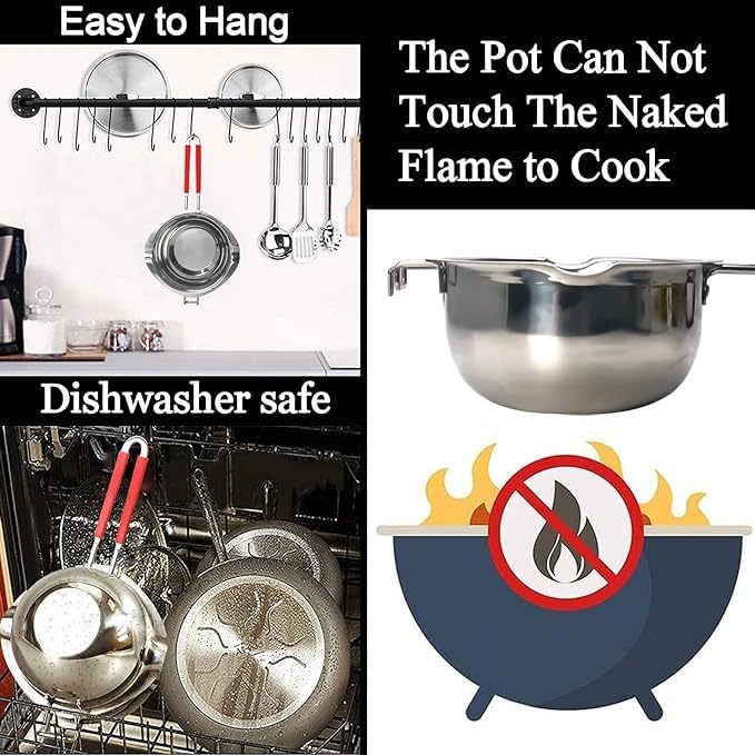 - ❤ Hochwertige Materialien -- 1200ML Wasserbad-Schmelzschale .Es besteht aus rostfreiem Stahl, ist rostfrei, robust, gesund und hat eine lange Lebensdauer.Geeignet zum Dämpfen oder Schmelzen kleiner Mengen von Lebensmitteln.