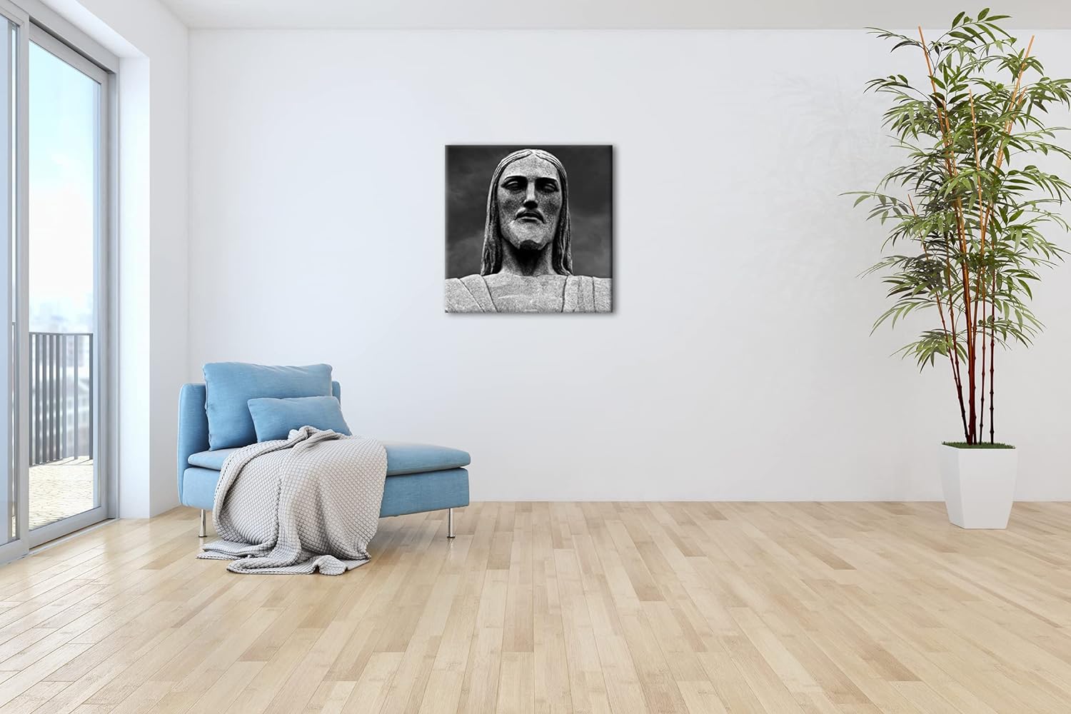 Jesus Statur in Rio de Janeiro Format: 60x60 Effekt:Schwarz&Weiss als Leinwandbild, Motiv fertig ger
