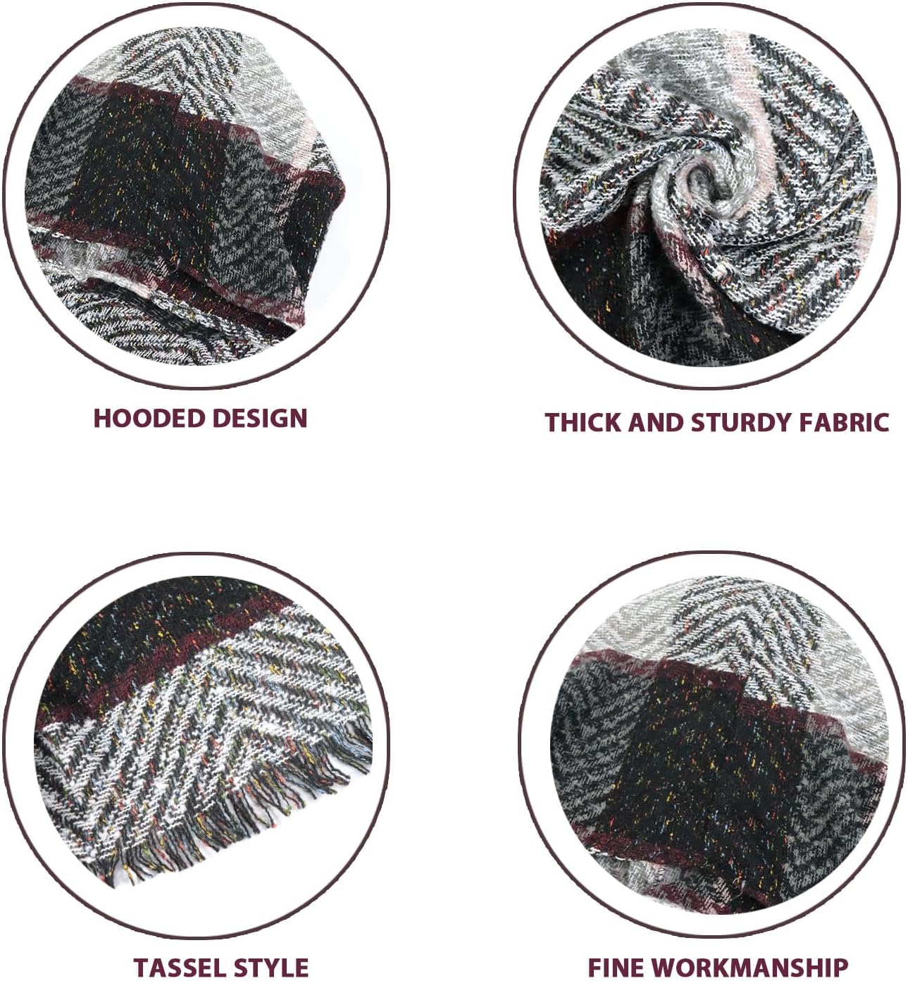PRODUKTBESCHREIBUNGEN Produkt: Damen Poncho mit Kapuze Warmer Poncho Material: Polyester Farbe: schwarzer Poncho und andere 6 Farben Saison: geeignet für Frühling, Herbst und Winter. Design: Dieser Poncho mit Kapuze Design, lässig und modisch; Streifen und Saum Fransen Design, sehr klassisch und elegant, die Farbkombination ist auch sehr harmonisch, mittlere Dicke, warm, kann als Schal, Schal, Mantel und Decke verwendet werden, können Sie es mit Ihrem eigenen Stil passen, geeignet für alle Gelegenheiten zu tragen. Paket Typ: 1 x Women's Knitted Ponchos