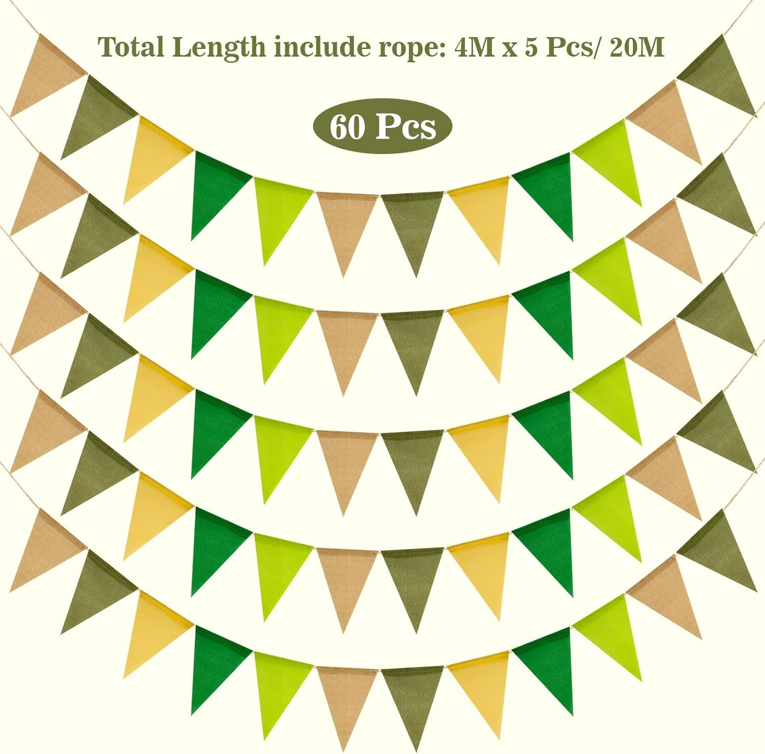 - 【60 Wimpel Jute】Dieses Wimpelkette Banner ist etwa 20 Meter lang und hat 60 dreieckige Jutefahnen, die einzeln aus dem Band gezogen werden können.