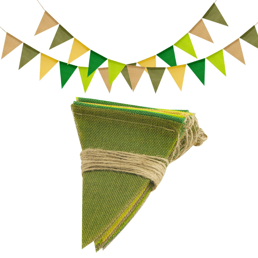 - 【Wimpelgrösse】Jede Flagge ist 13 cm x 17 cm gross, wimpelkette aus Jute in leuchtenden und fröhlichen Farben, darunter Salbeigrün, Hellbraun, Grasgrün, Grün, Gelb usw., die sich sehr gut zur Dekoration eignen.