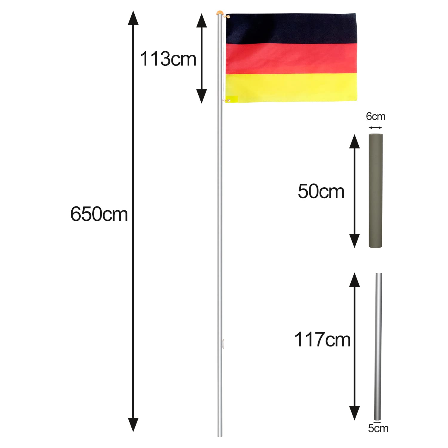 Jiubiaz Fahnenmast Aluminium Teleskop 6,50m, Fahnenstange Bodenhülse 50cm, inkl Deutschlandfahne, Hö