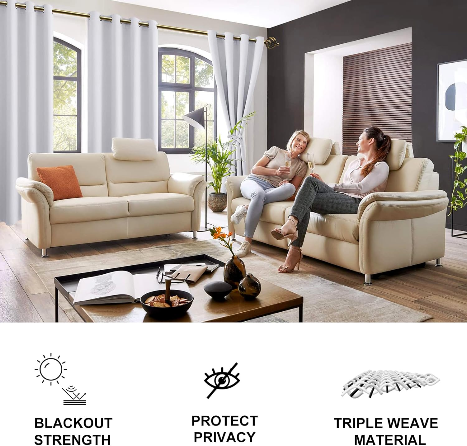 - Unsere Verdunkelungsvorhänge sind weich, strapazierfähig und glatt.Sie bestehen aus hochwertigem, dreifach gewebtem Mikrofaser-Verdunkelungsstoff, der die meisten schädlichen Sonnenstrahlen und UV-Strahlen effektiv blockiert und Ihre Möbel, Böden