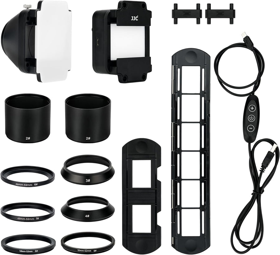 - 【Komplettes Zubehör】 Das Diascanner-Set enthält 1x Lauf, 8x Adapter, 1x 35-mm-Filmhalter (Negativhalter), 1x 35-mm-Diahalter (Positivhalter), 1x LED-Licht mit 42 Perlen und Fotos - Funktioniert eigenständig, kein Computer / anderes Kamerazubehör