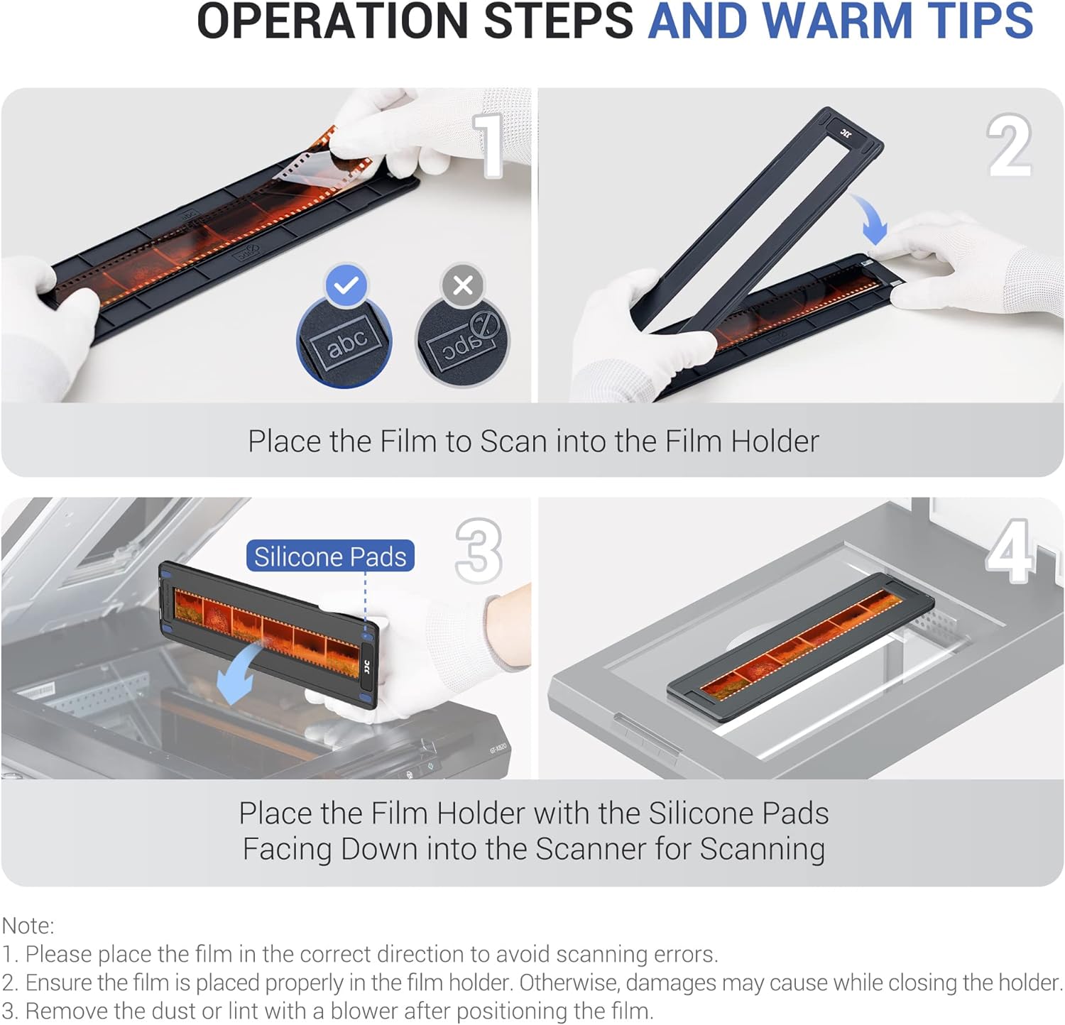 - Die Filmscannermaske hält 35-mm-Negative flach in einem Streifenhalter und ist für Flachbettscanner mit Hintergrundbeleuchtung/Transparenzeinheit geeignet. Der Scanbereich beträgt 9,0x1,1"/ 228,5x 27,9mm.