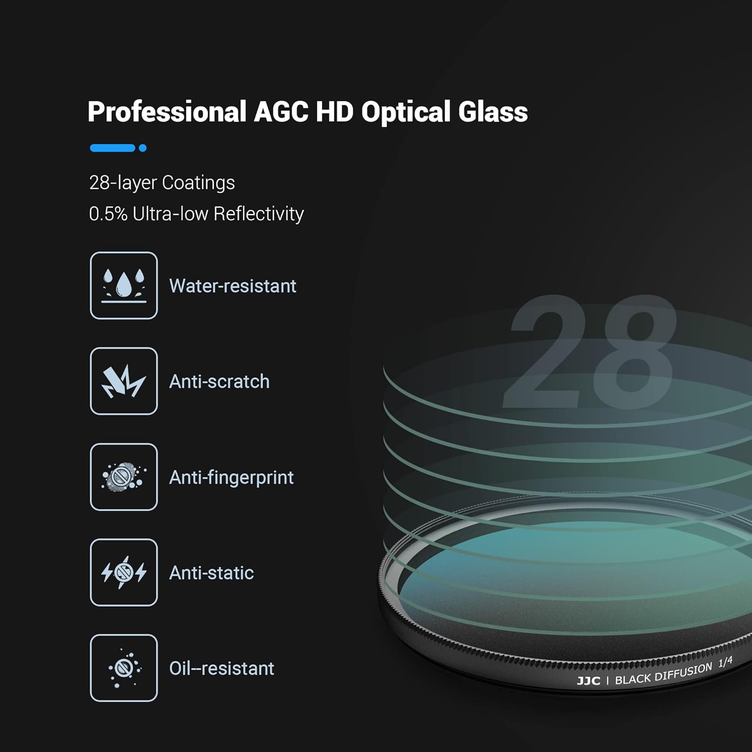 - 【Doppelseitige Antireflexions-Nanobeschichtung】 Der 1/4-Schwarznebelfilter hat 28 Beschichtungsschichten, die die Reflexion des Bodens und des Filters selbst wirksam reduzieren und gleichzeitig Blendung verhindern und weniger als