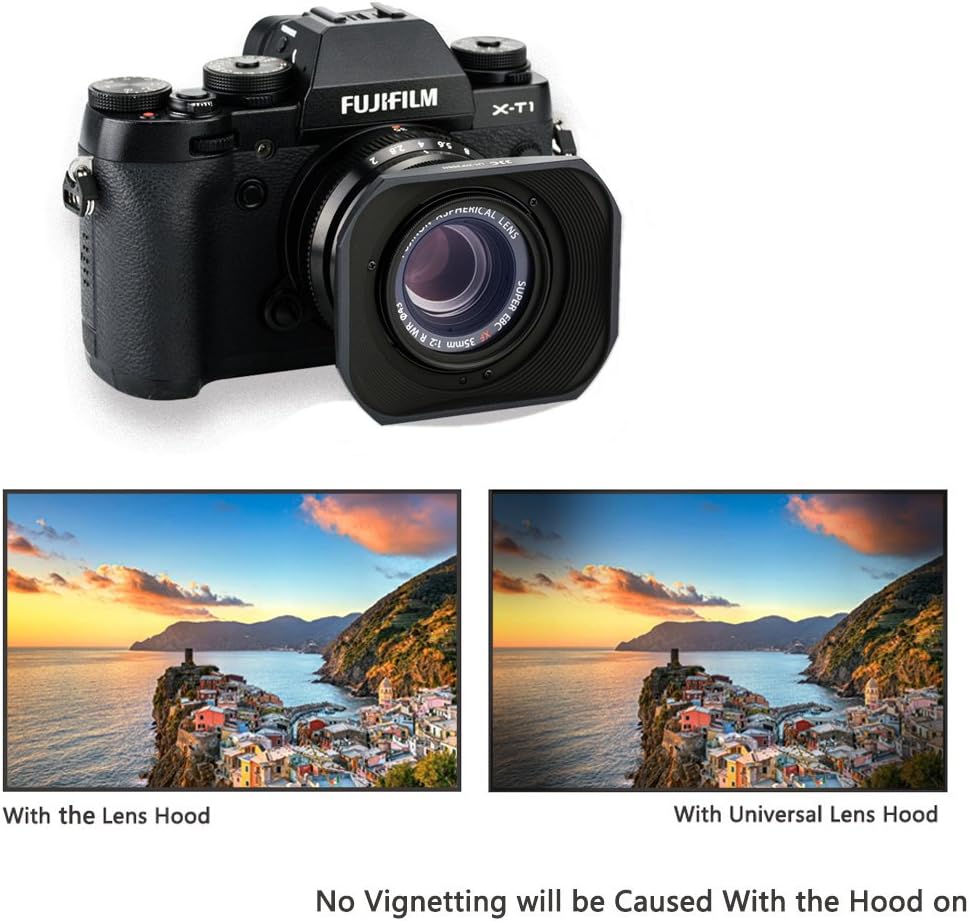 JJC LH-JXF35SII Gegenlichtblende aus schwarzem Metall, quadratisch, Bajonett-Gegenlichtblende für Fu