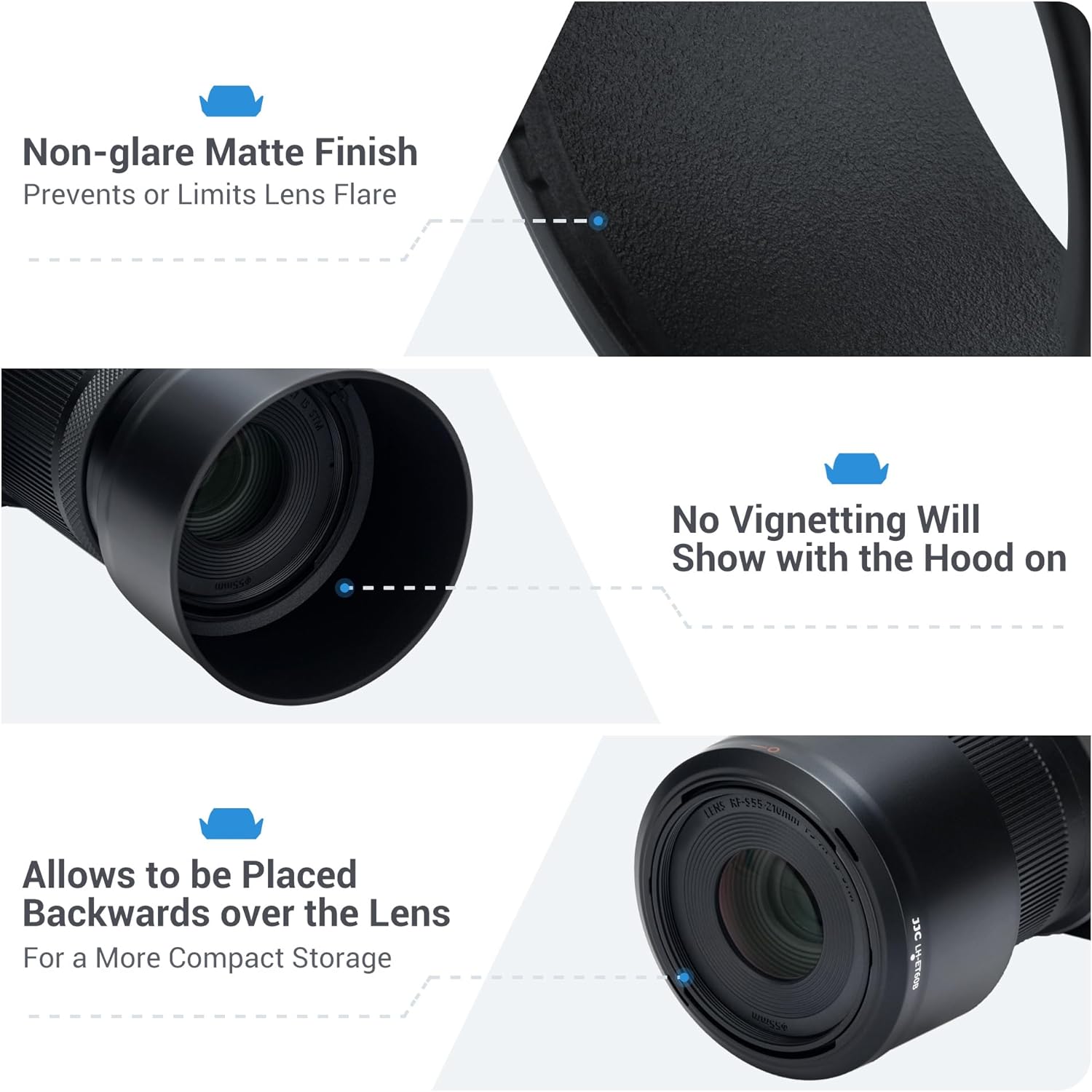 - Blendfrei und Vignettierung: Die matte Oberfläche im Inneren verhindert Reflexionen und hilft Streulicht zu minimieren, indem Streulicht vom Eindringen in das Objektiv abgelenkt wird. Aus hochwertigem ABS-Material, bietet die Blende auch zusätzlichen