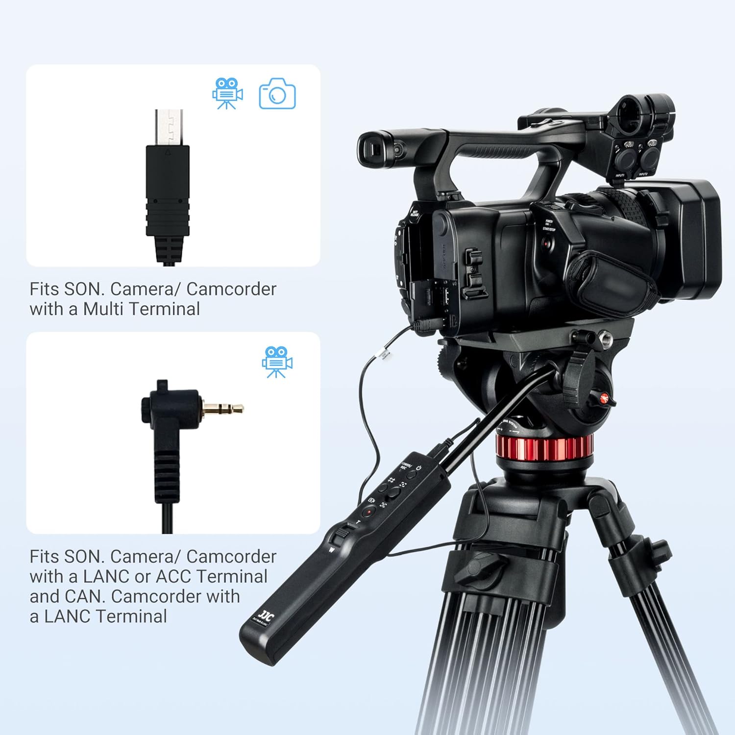 - Die Fernbedienung für Sony-Kamera/Camcorder mit einem Multi/LANC-Terminal und Canon-Camcorder mit LANC-Terminal. Steuern Sie Ihre Kamera/Ihren Camcorder durch die Verwendung eines Kabels, das mit dem Multi/LANC-Anschluss verbunden ist, was Ihre