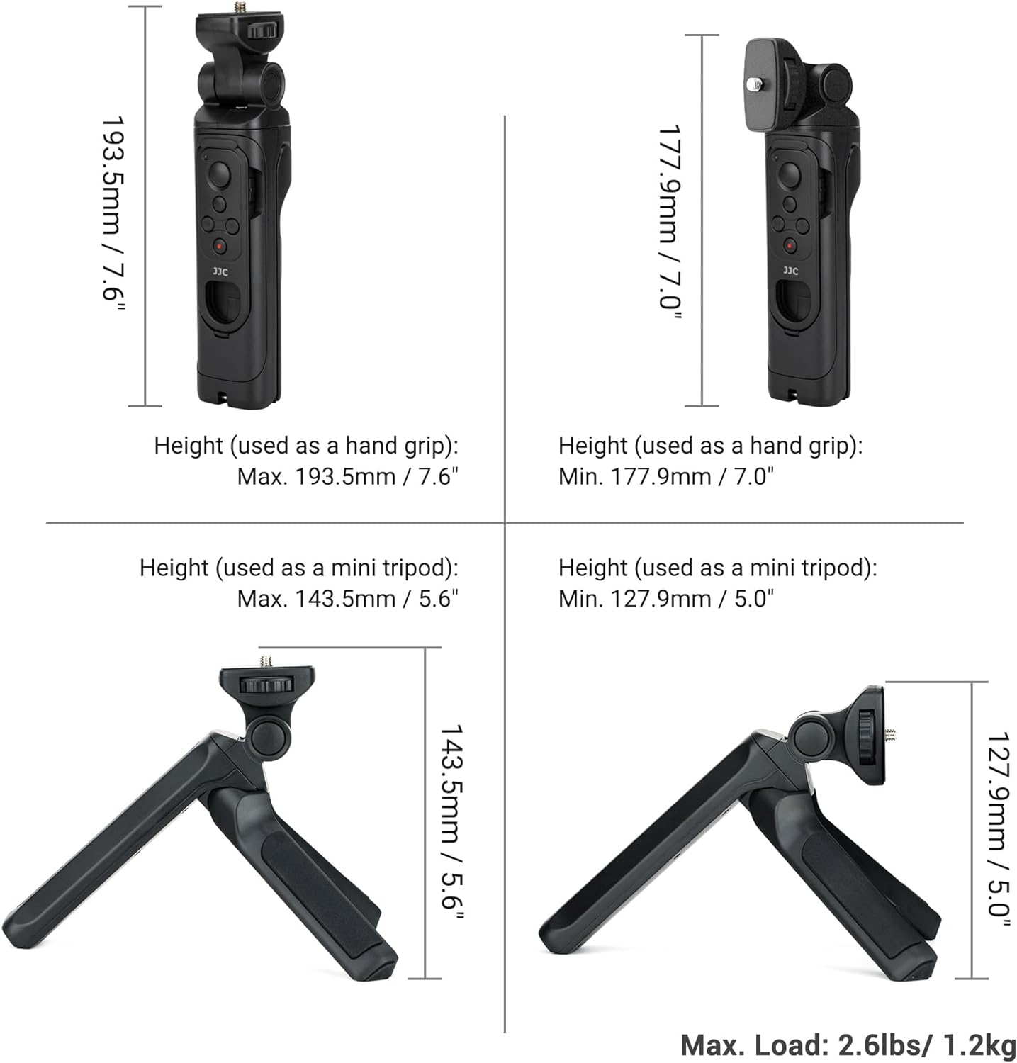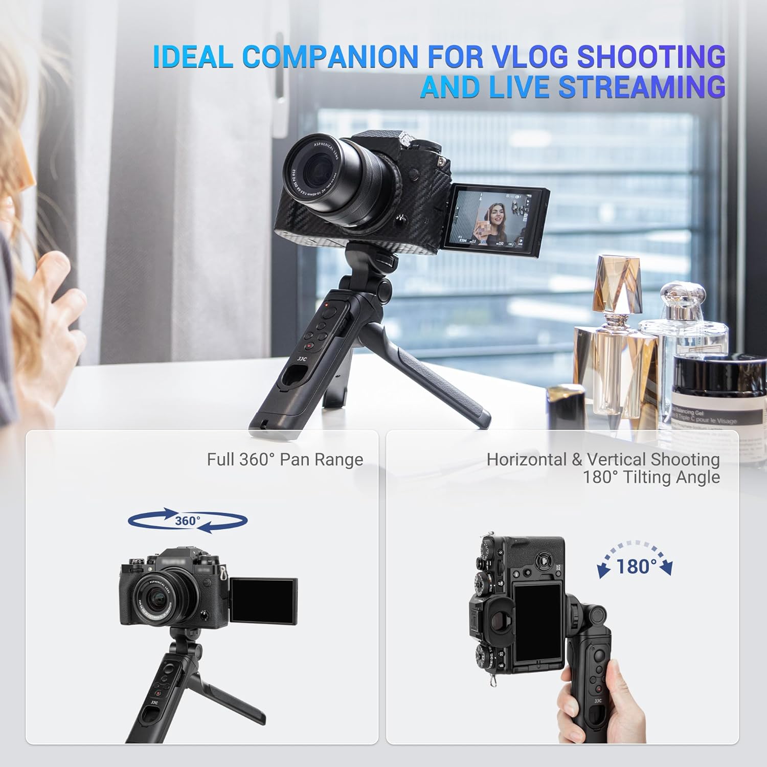 - JJC Der kabellose Kamera-Aufnahmegriff kann als Kameragriff für Handheld-Aufnahmen oder zum Ausklappen als Tischstativ verwendet werden. Es ist ein idealer Begleiter für Vlog-Shooting und Live-Streaming. Hergestellt aus hochwertigem ABS-Material.