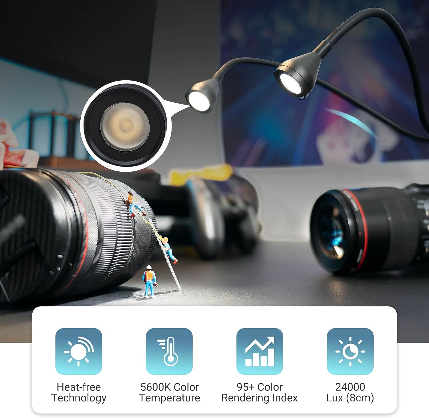 - Professionelle Makro LED Leuchte: Makro Arm Licht nimmt hitzefrei Technologie und besteht aus 2 LED-Leuchten speziell entwickelt, um Ihre Nahaufnahmen Themen in Makrofotografie zu beleuchten.