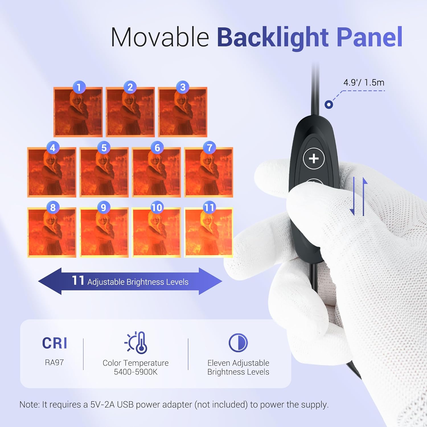 - 【Einstellbare Helligkeit】 Das Dia-Viewer-Panel mit Hintergrundbeleuchtung kann effizient zum Betrachten von Dias und Negativfilmen verwendet werden. Magnetisches Merkmal ist für einfache Befestigung an der Gleitschiene Träger vertikal Einstellung.
