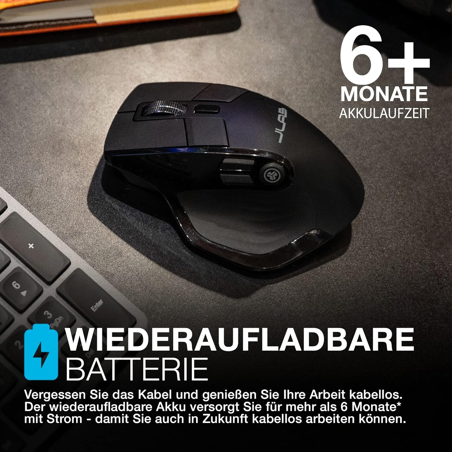 - FLEXIBLE VERBINDUNGEN: Die JLab Epic Mouse ist mit drei gleichzeitigen Geräteverbindungen kompatibel. Verbinden Sie diese Computermaus über Bluetooth 5.2 oder den drahtlosen USB-Dongle (2,4 GHz) mit nahezu jedem Gerätetyp. Wechseln Sie ganz einfach